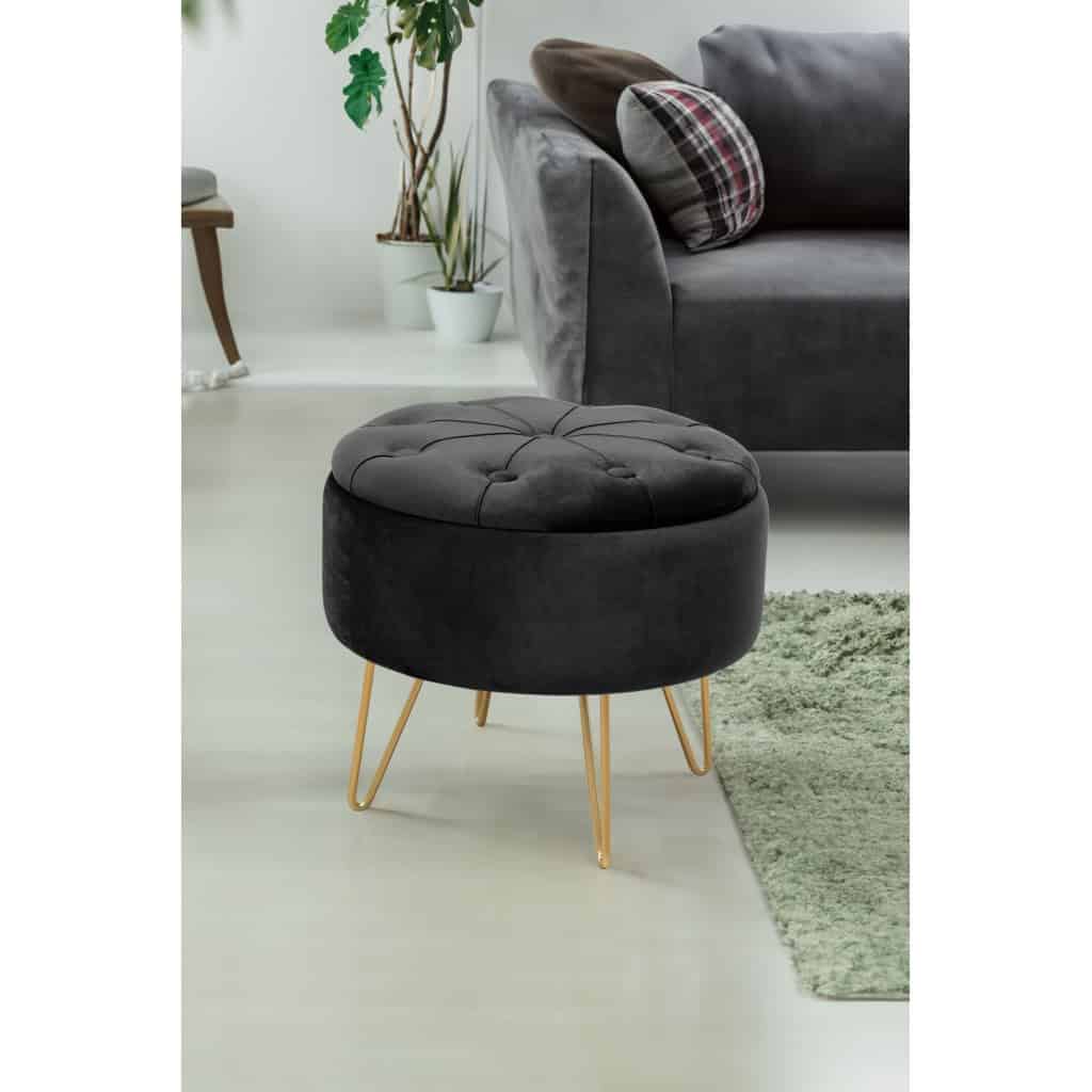 Taburet Caro cu spatiu depozitare, tapitat cu velur, 38×33 cm, negru Mob360 – produs disponibil în magazinul Mob360.
