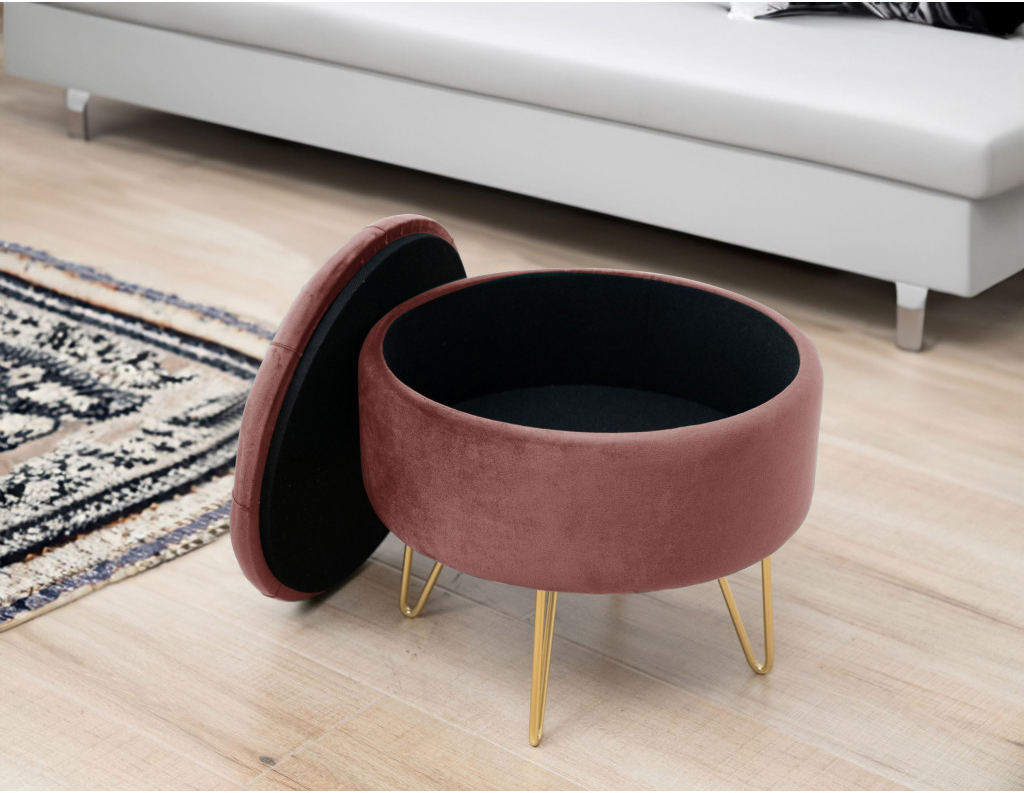 Taburet Caro cu spatiu depozitare, tapitat cu velur, 38×33 cm, roz Mob360 – produs disponibil în magazinul Mob360.
