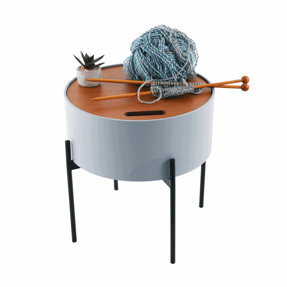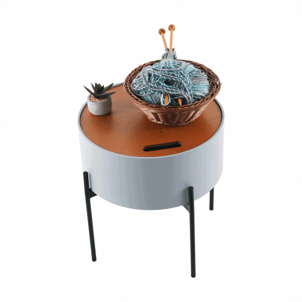 Taburet cu spaţiu de depozitare, gri/natural/negru, MOSAI