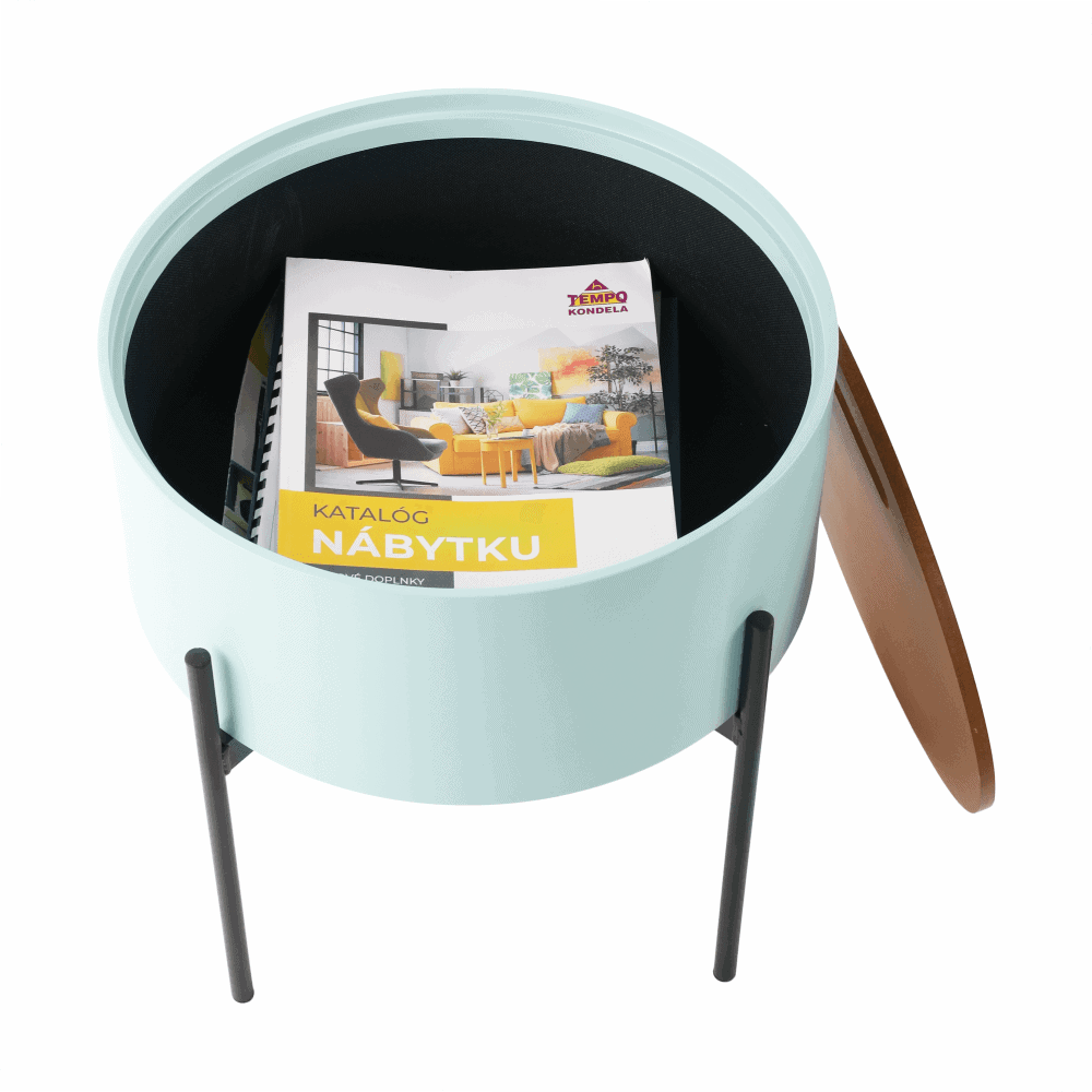 Taburet cu spaţiu de depozitare, neo mentă/natural/negru, MOSAI