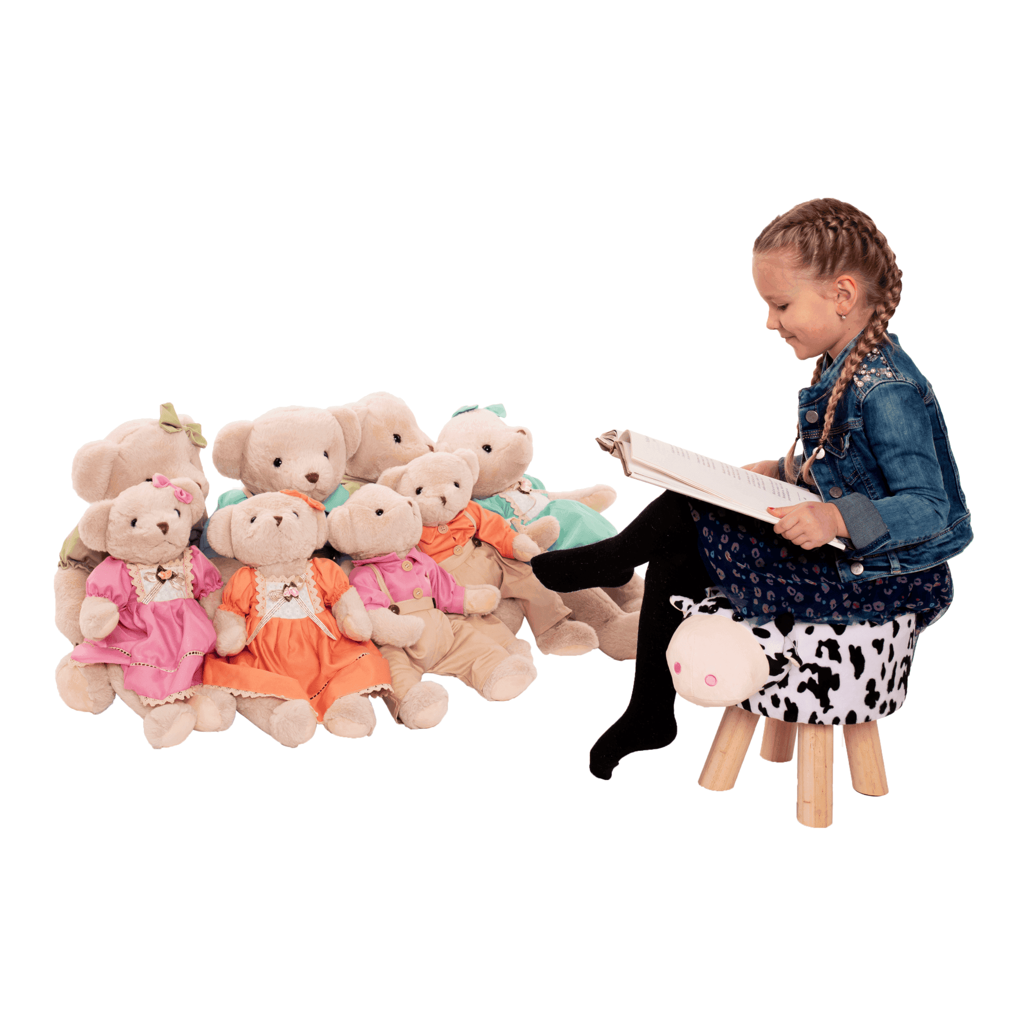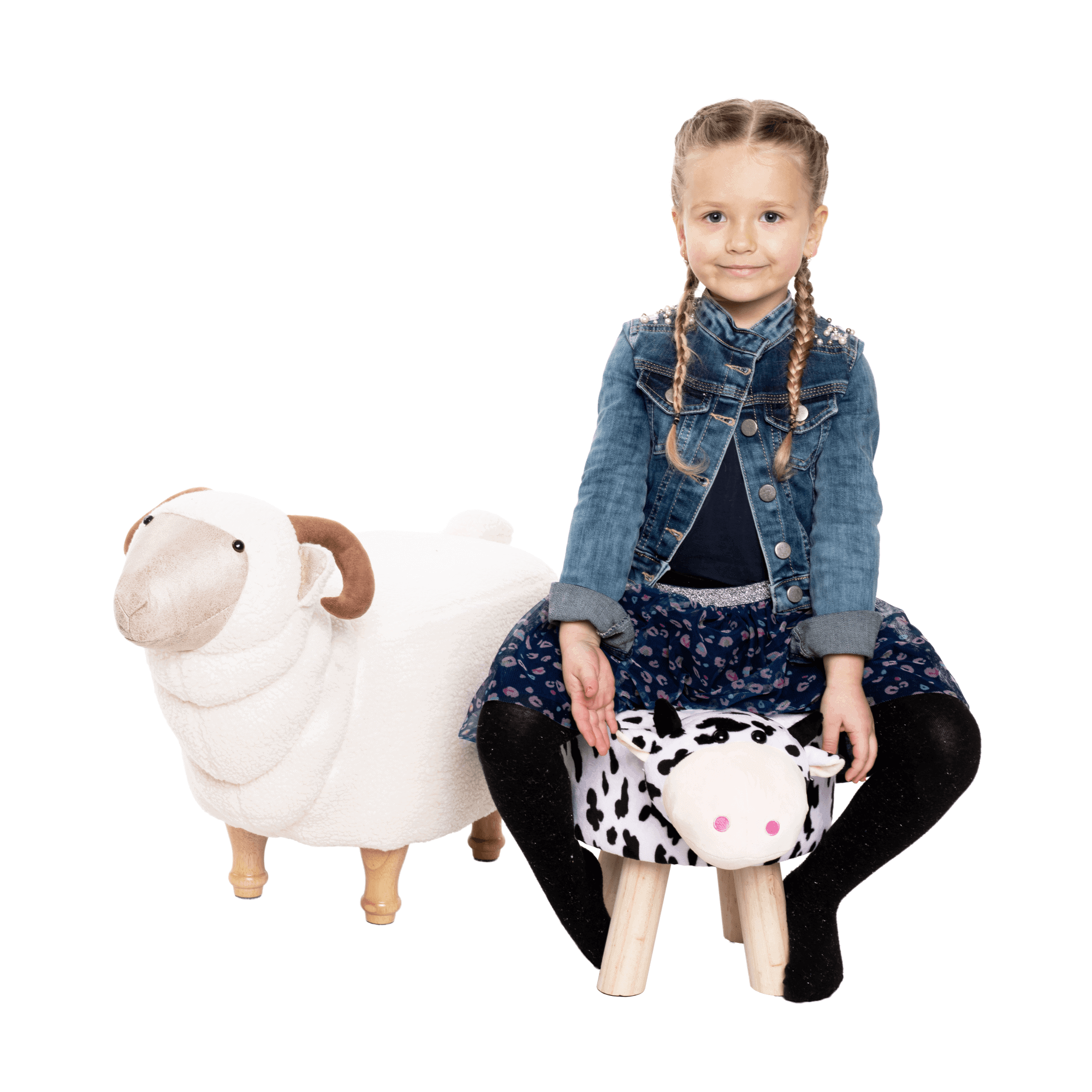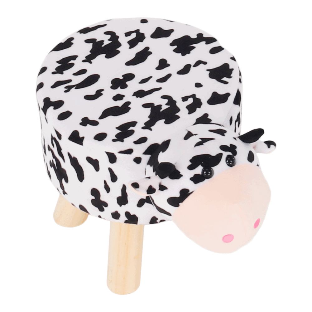 Taburet în formă de văcuţă, catifea Velvet alb/negru/natural, MOLLY