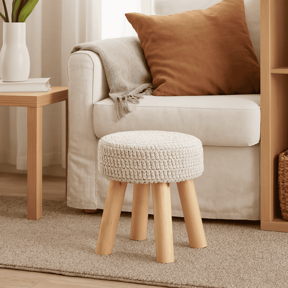 Taburet, lână bej, NAIDA