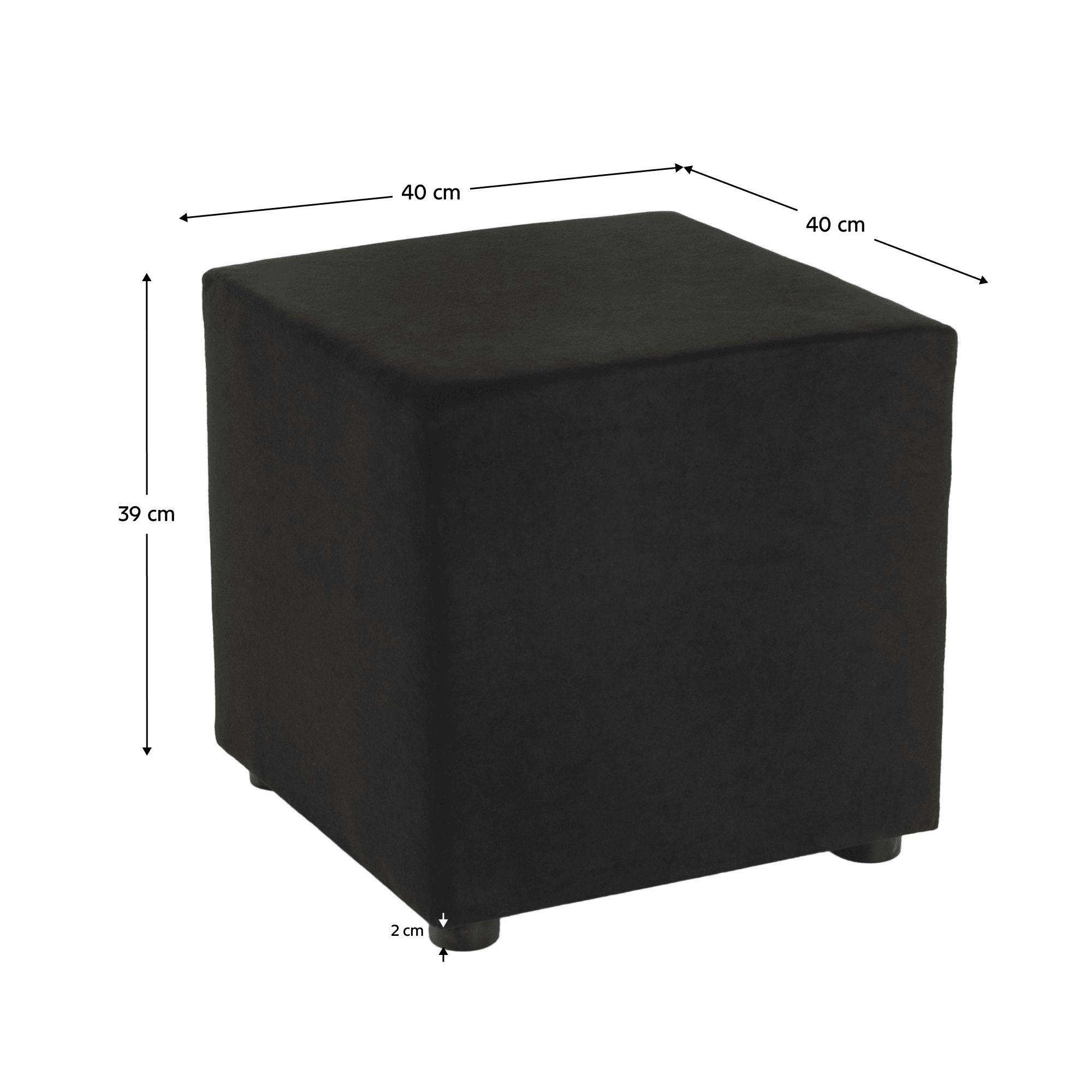 Material: ţesătură Alova 04 Versiune culoare: negru Rezistenţa la frecare a materialului conform testului Martindale: 65.000 abraziuni Miez scaun: PAL/spumă pură Dimensiuni (Lxlxh): 40x40x39 cm Înălţimea părţii de şezut: 39 cm Adâncimea părţii de şezut: 40 cm Portanţă: 100 kg Cu ??picioare de plastic Înălţimea picioarelor: 2 cm Greutate: 2 kg Livrat asamblat