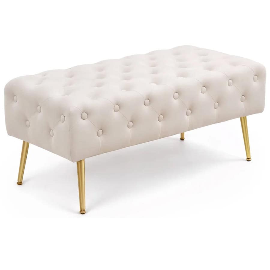Taburet Monaco, tapitat cu catifea, tip banca, cu picioare metalice, 100x42x41 cm, bej Mob360