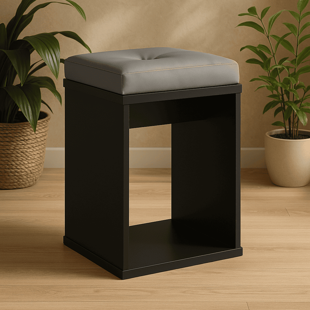 Taburet pentru masuta de toaleta cu sezut confortabil, 30x30x42 cm, negru Mob360 – produs disponibil în magazinul Mob360.
