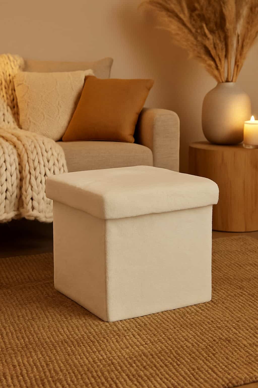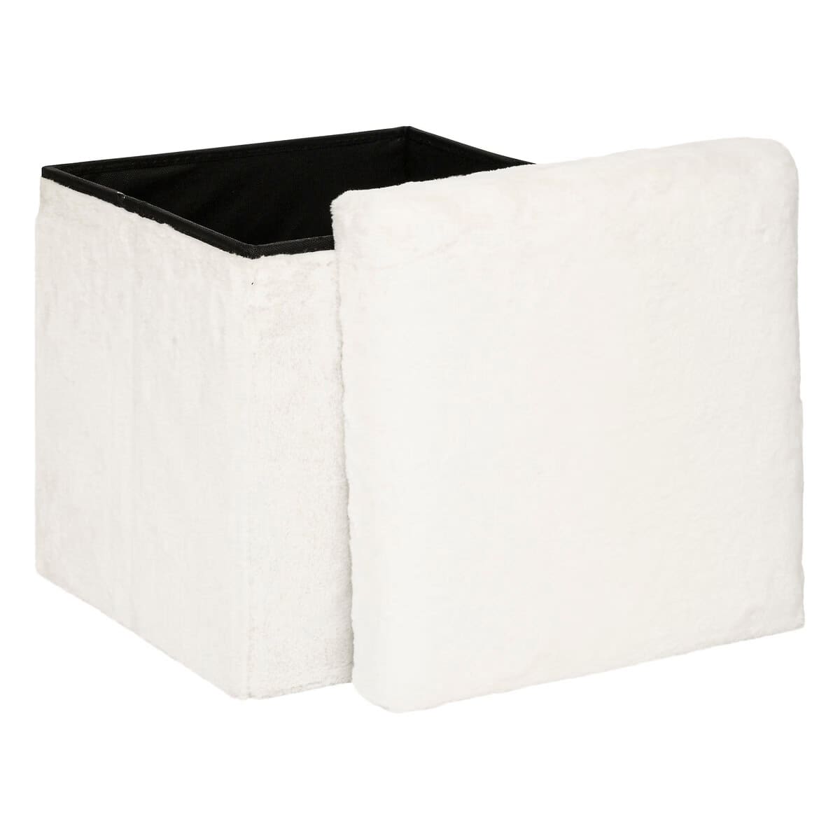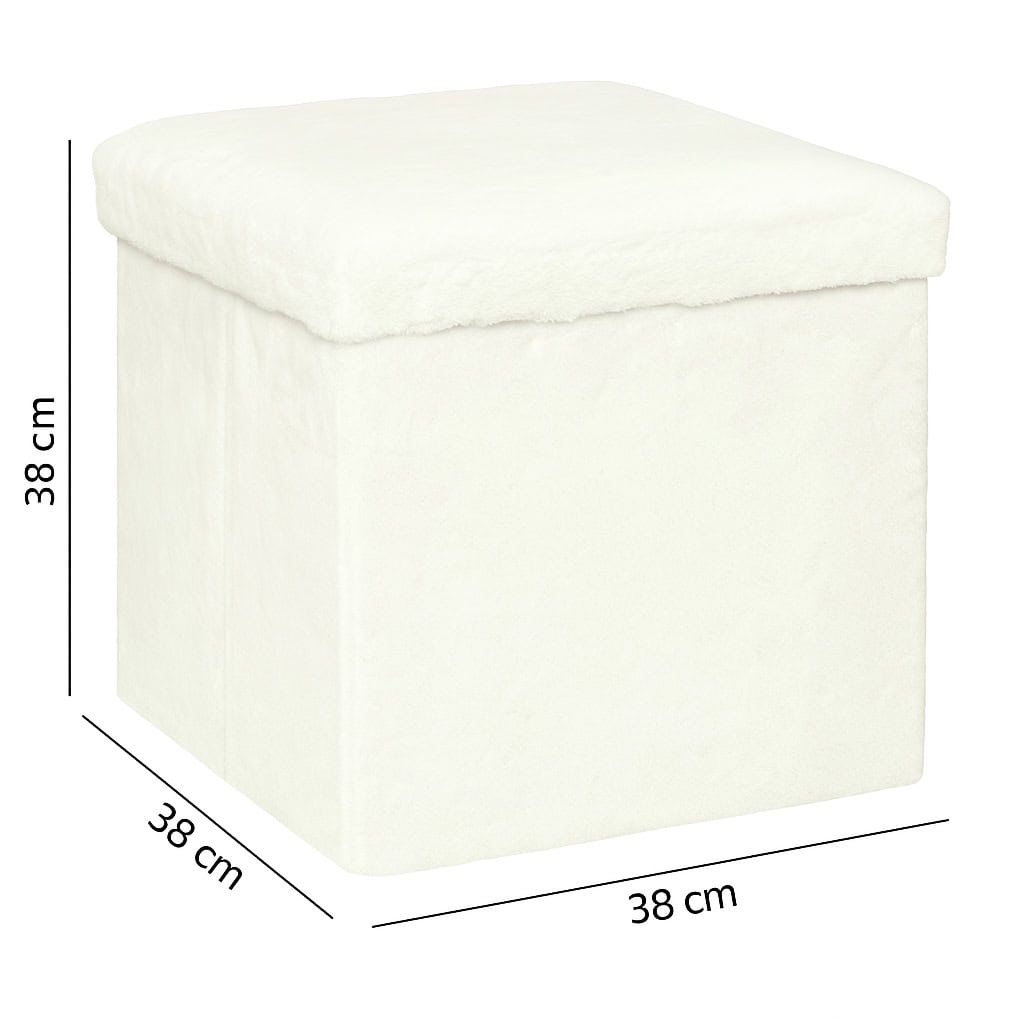Taburet pliabil Atmosphera Ezzio cu spatiu depozitare, 38x38x38 cm, blana artificiala, alb Mob360