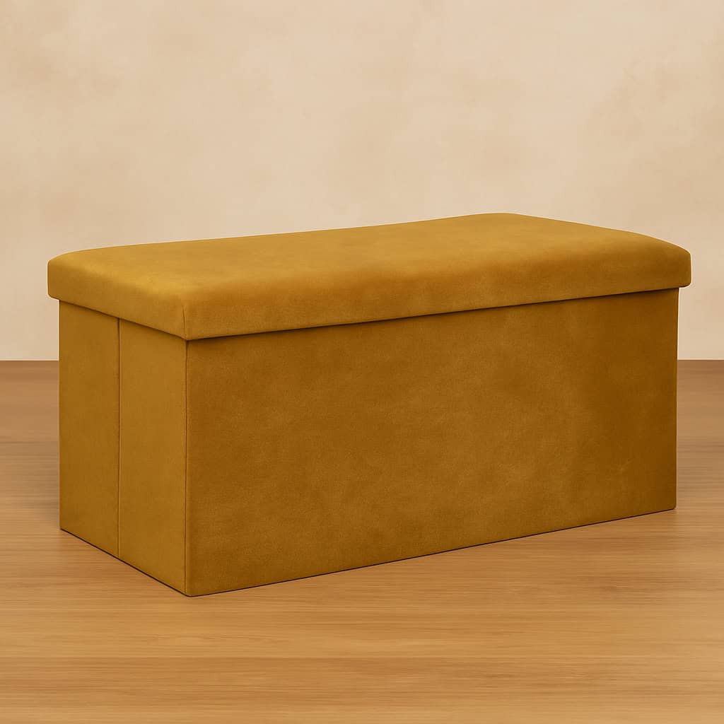Taburet pliabil Atmosphera Lilou cu spatiu depozitare 80L, 76x38x38 cm, galben mustar Mob360 – produs disponibil în magazinul Mob360.