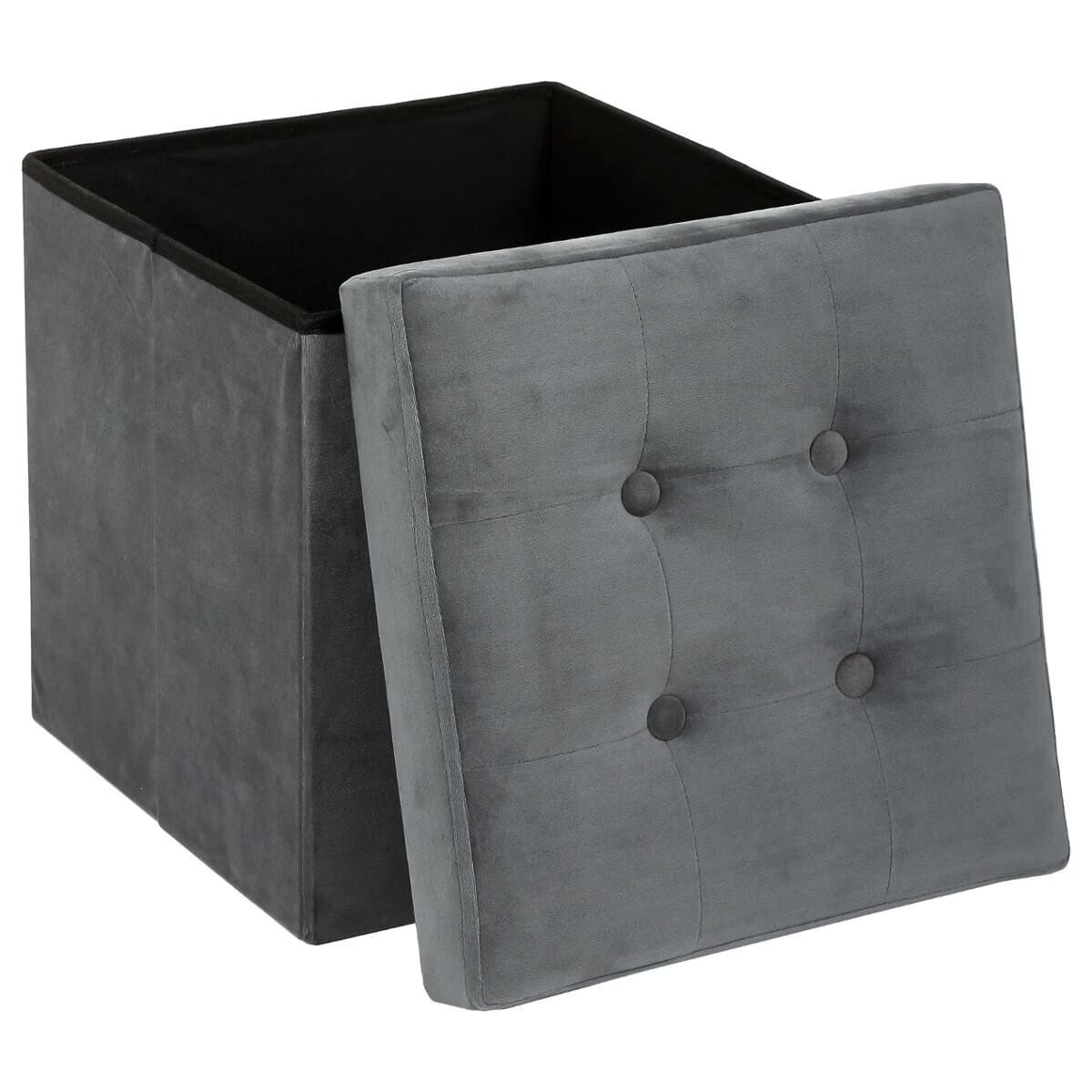 Taburet pliabil Atmosphera Lysandre cu spatiu de depozitare, 38x38x38 cm, gri Mob360 – produs disponibil în magazinul Mob360.