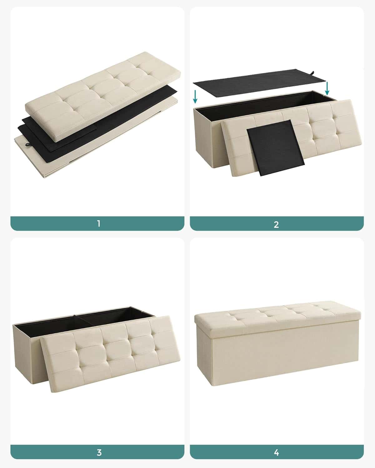 - Banca pliabila SONGMICS este o solutie practica si eleganta pentru depozitare si relaxare. Cu un design modern si tapiterie tip in, aceasta imbina confortul cu functionalitatea, oferind un spatiu generos pentru organizarea obiectelor din casa. Ideala pentru orice incapere, poate fi folosita ca banca, lada sau suport pentru picioare. Caracteristici principale: