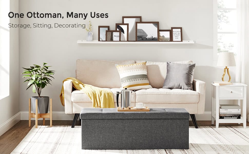 Utilizari versatile: Folositi acest pouf de depozitare, taburet sau chiar masuta de cafea! Poate fi amplasat oriunde doriti, cum ar fi in sufragerie, la capatul patului, in foaier sau sub o fereastra.