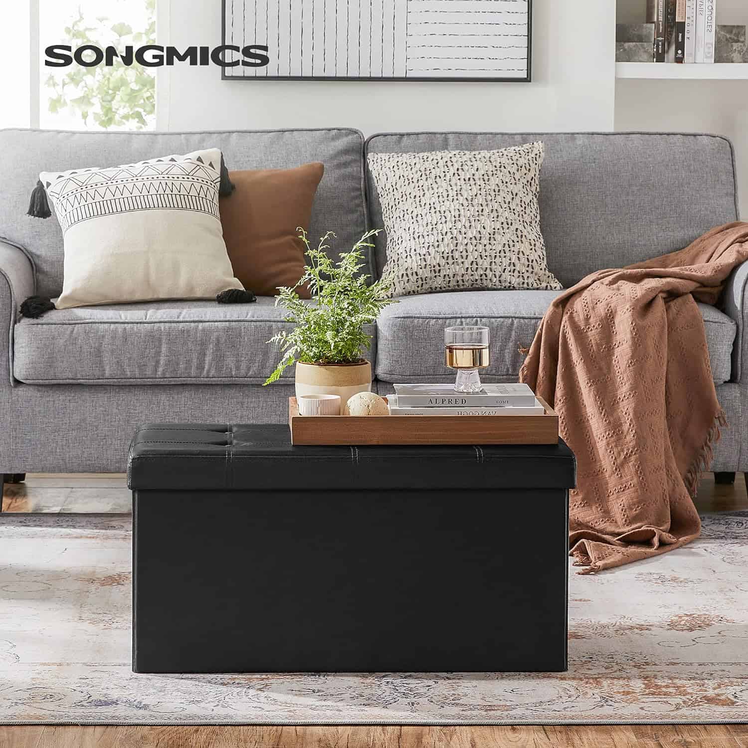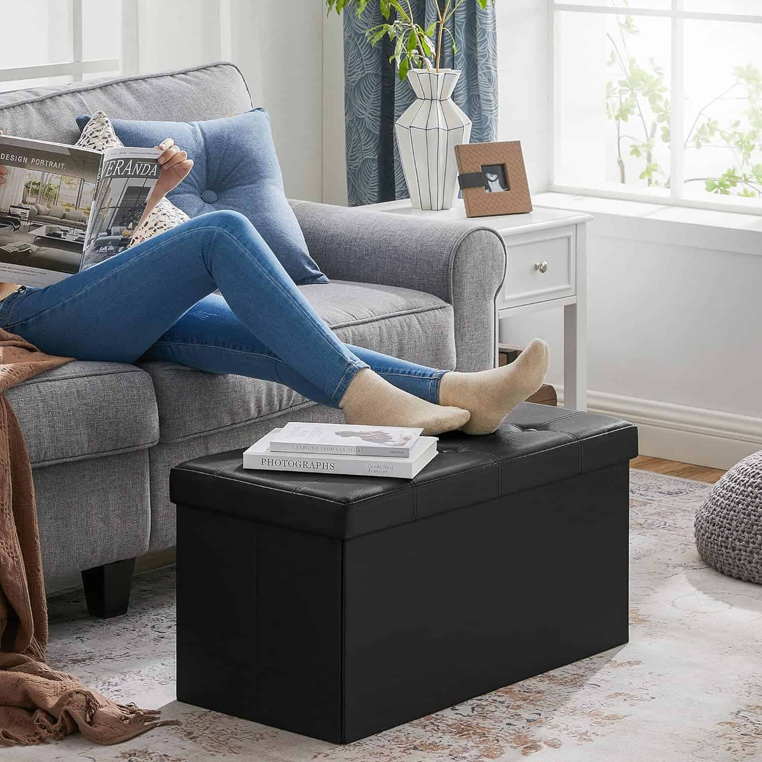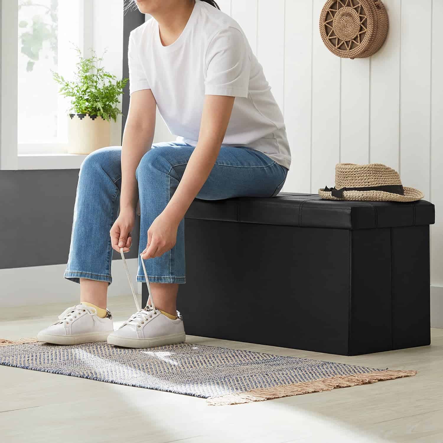 Taburet pliabil cu sezut moale, spatiu de depozitare 80litri, maxim 300kg, 76x38x38cm, negru Mob360