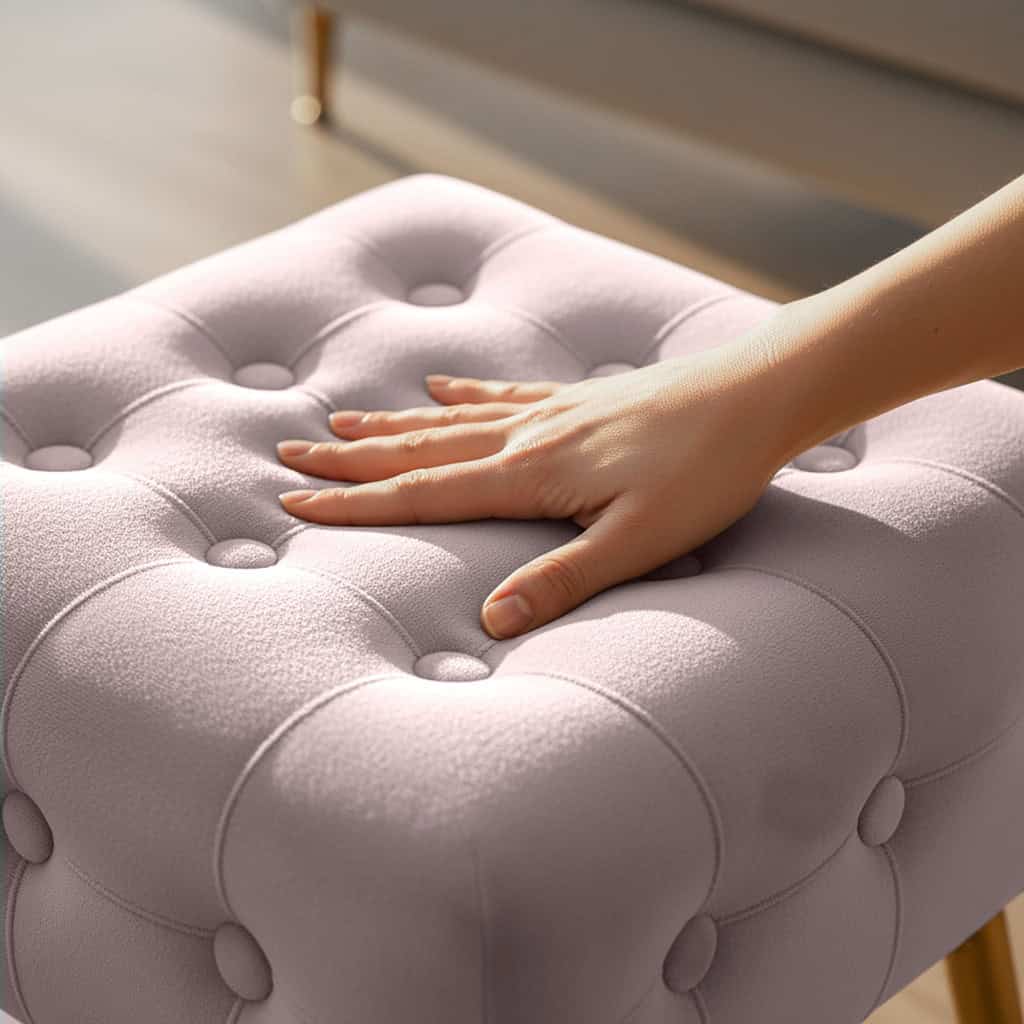 Taburet tapitat Quadra, velur, cu picioare metalice, 40x40x42 cm, roz pudra Mob360