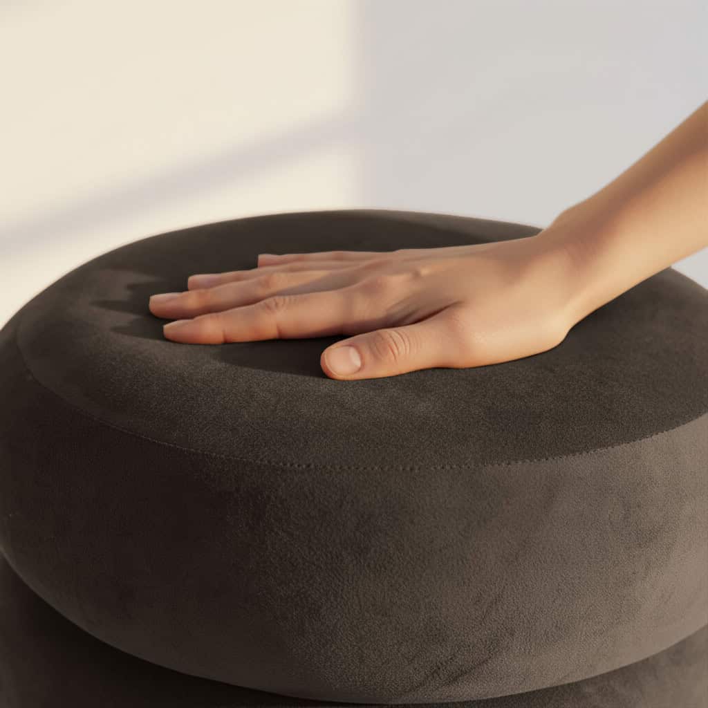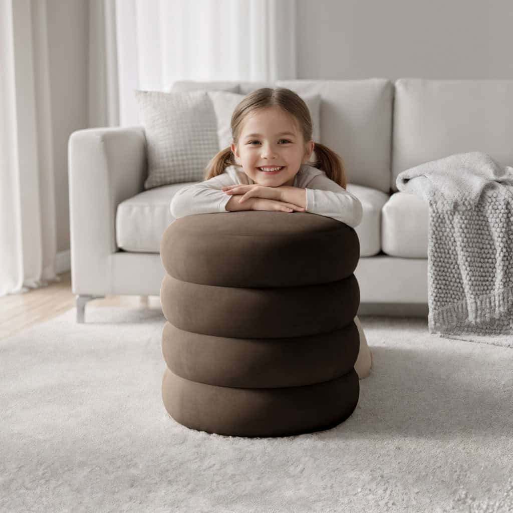 Taburet tapitat Snuggo cu spatiu de depozitare, velur, diametru 42 cm, inaltime 45 cm, maro Mob360 – produs disponibil în magazinul Mob360.