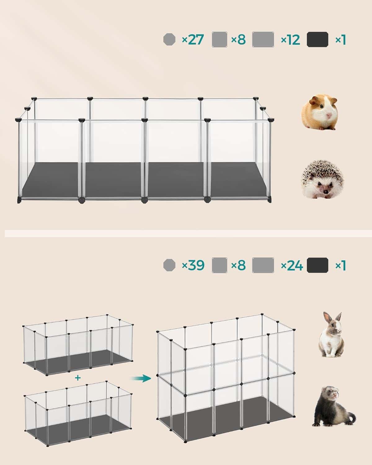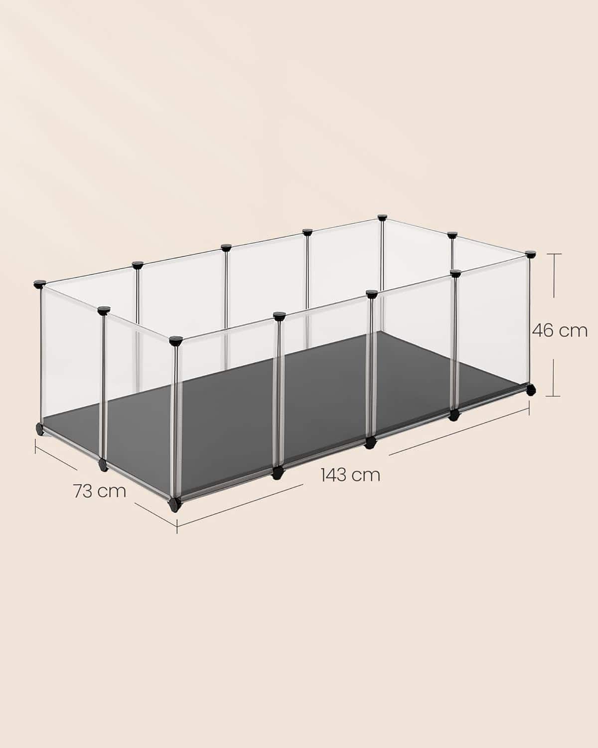 Tarc animale mici modular cu placi de baza si covoras impermeabil, 143x73x46 cm, transparent Mob360