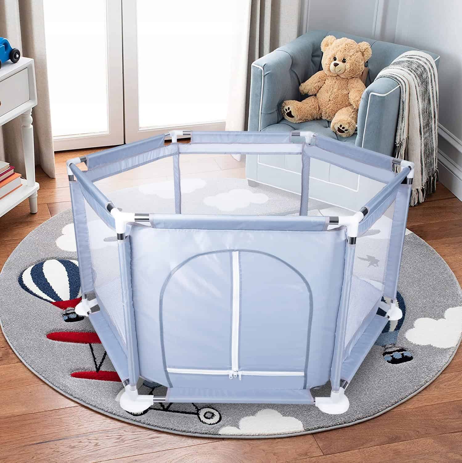 Tarc loc de joaca pentru copii sau bebe, material textil, gri, 130x60cm Mob360 – produs disponibil în magazinul Mob360.
