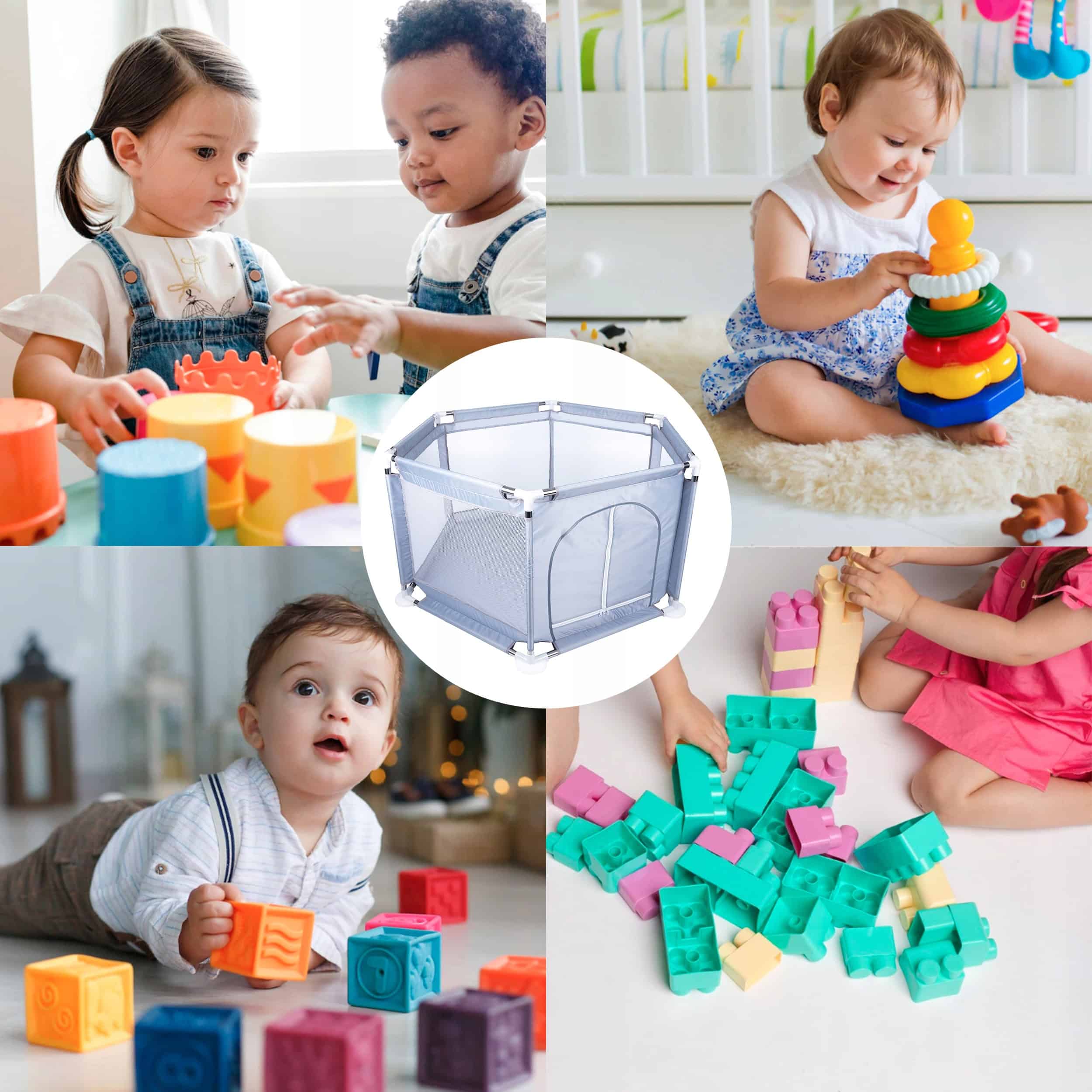 Specificatii tehnice: Diametrul exterior: 130 cm Diametru interior: 115cm Distanta dintre peretii opusi: 110cm Inaltime: 63 cm Latimea unui singur perete hexagonal: 60cm Material: tesatura oxford 150D Cadru metalic solid cu accesorii din plastic Intrare cu fermoar Atentie , bilele din plastic nu sunt incluse in pachet ! Tarcul pliabil, asigura ore de distractie fara sfarsit pentru unul sau mai multi copii. Cu parcul nostru, puteti crea un mediu de joaca sigur pentru copilul dumneavoastra. Vine cu pereti din plasa de ventilatie pentru o vizibilitate usoara si o usa cu fermoar pentru acces usor. Usor de asamblat si pus deoparte sau chiar de luat pentru vacante sau petreceri. In acest fel, veti avea intotdeauna o zona de joaca sigura. Copilul dvs. mic poate exersa statul in picioare si tararea in parc. El/ea poate sa se traga singur(a) si sa exerseze pasii in timp ce se joaca cu marginile din jur. Datorita diametrului sau mare si peretilor inalti, va permite o distractie grozava fara riscul de a varsa sau de a pierde mingi.