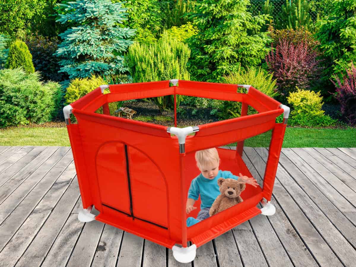 Tarc loc de joaca pentru copii sau bebe, material textil, rosu, 130x60cm Mob360