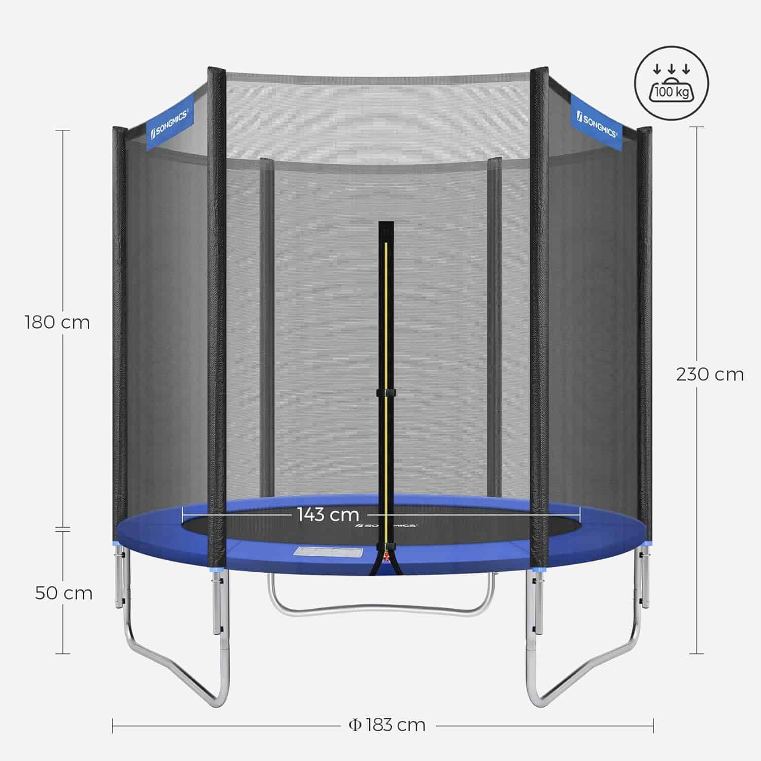 Trambulina pentru copii cu plasa de protectie exterioara, diametru 183 cm, 100 kg, albastru Mob360