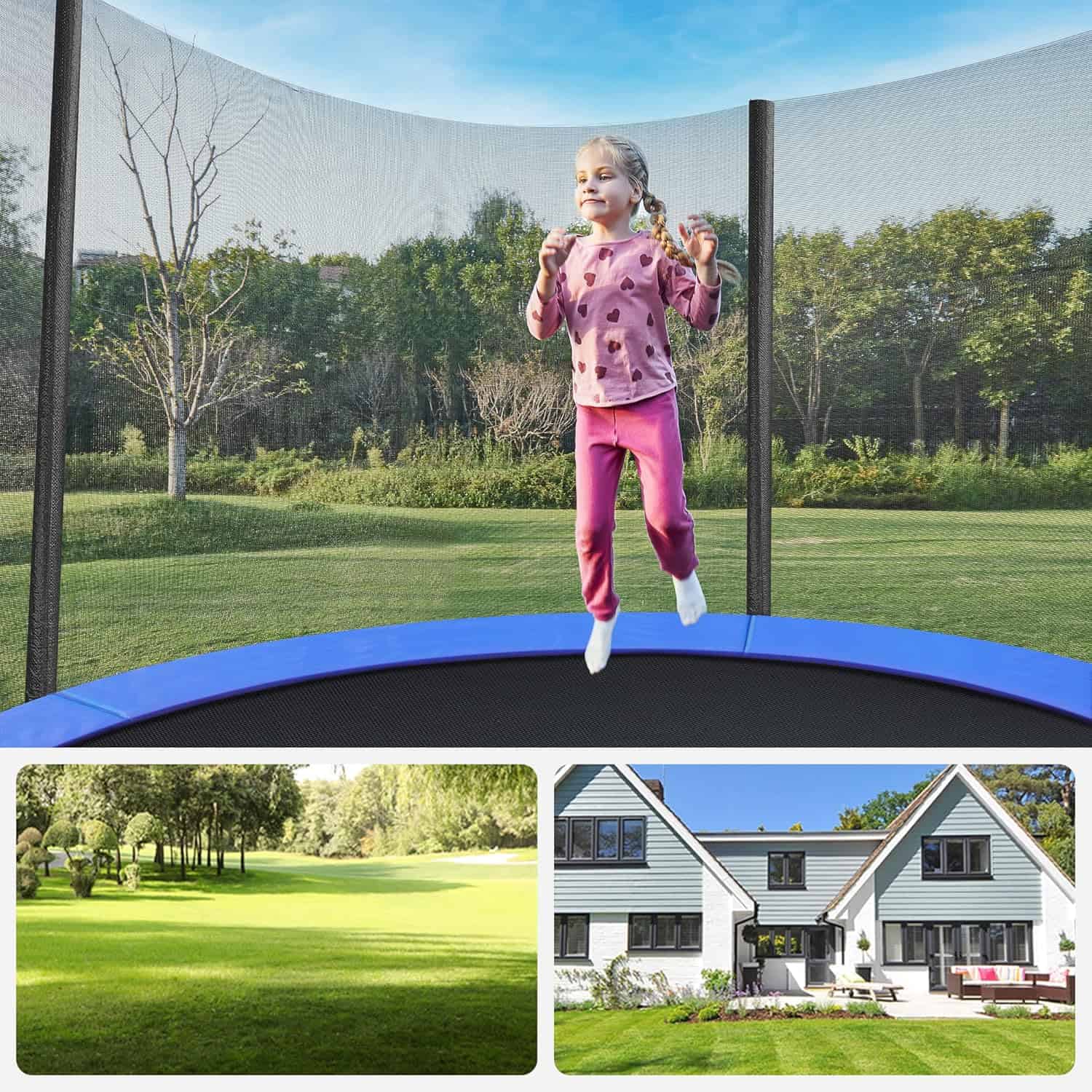 - Trambulina pentru gradina este ideala pentru joaca activa si sigura, fiind echipata cu plasa de protectie si structura rezistenta. Ofera distractie si miscare pentru copii, in aer liber. Caracteristici principale: