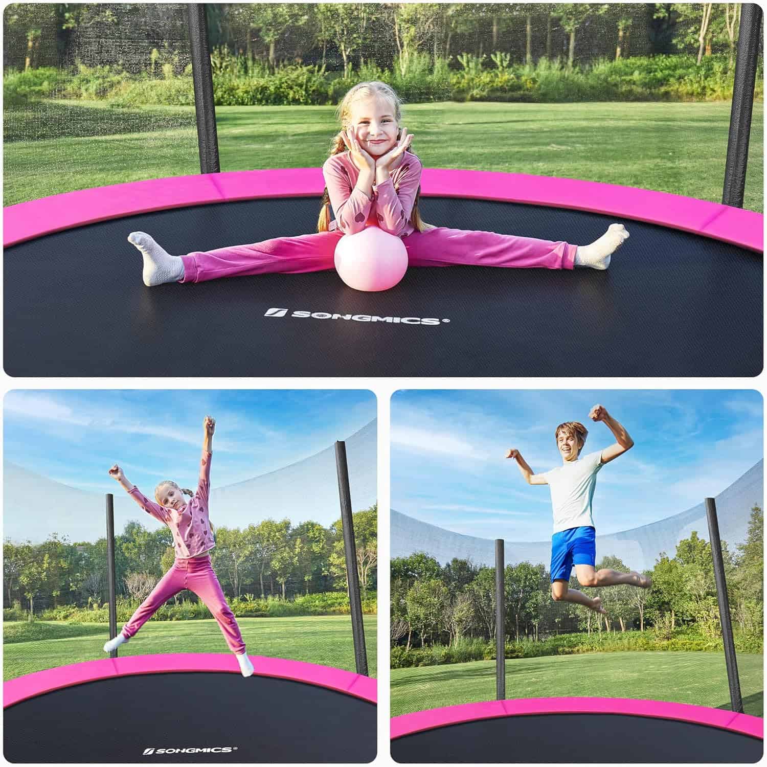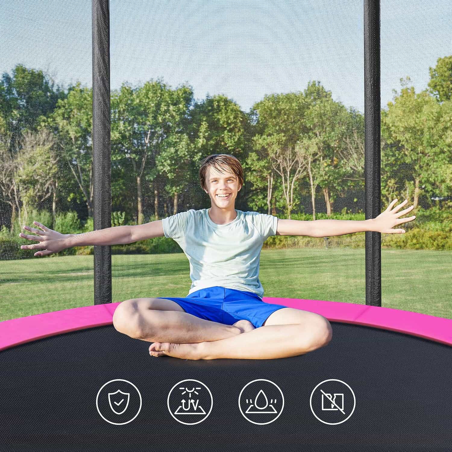 Trambulina pentru copii cu plasa de protectie exterioara, diametru 183 cm, 100 kg, roz Mob360