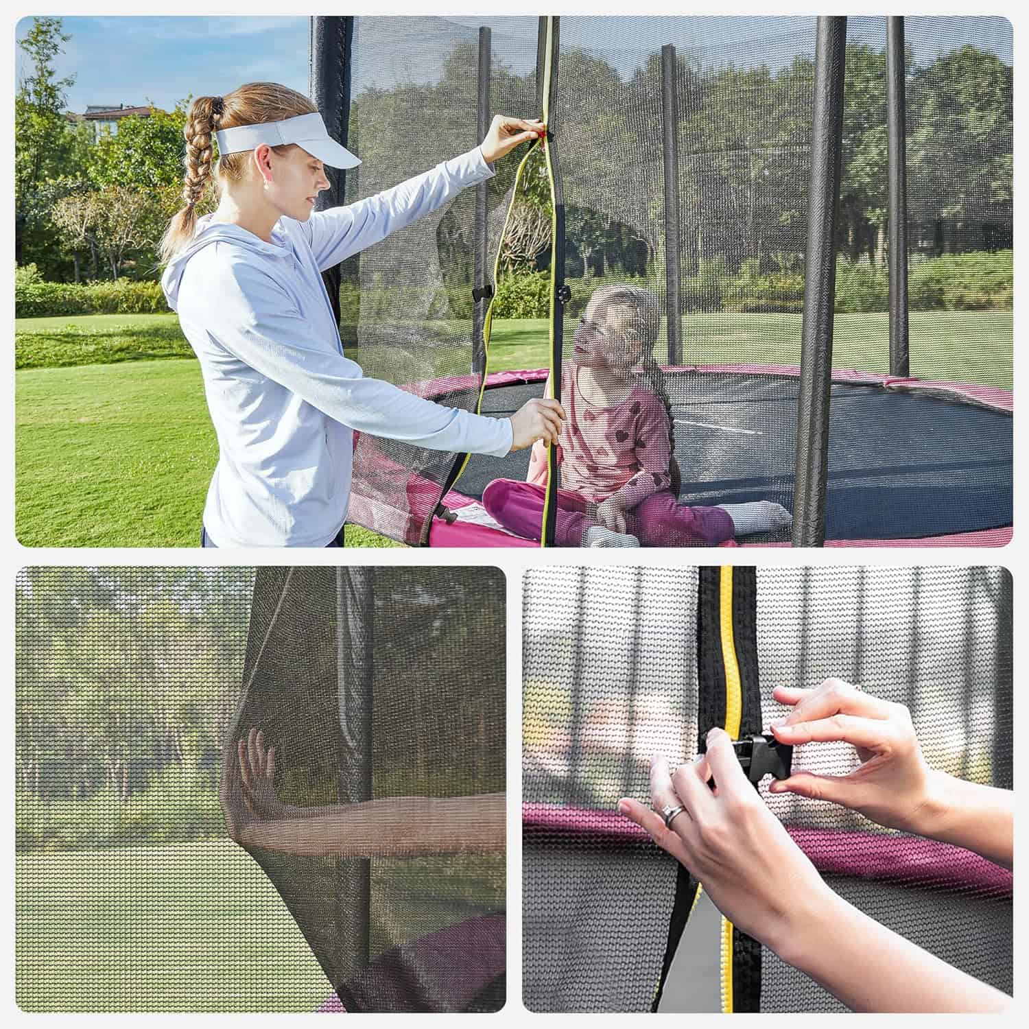 - Trambulina pentru exterior este ideala pentru joaca activa in gradina, oferind siguranta si distractie copiilor. Echipata cu plasa de protectie inalta si structura rezistenta din otel, este perfecta pentru utilizare zilnica. Caracteristici principale: