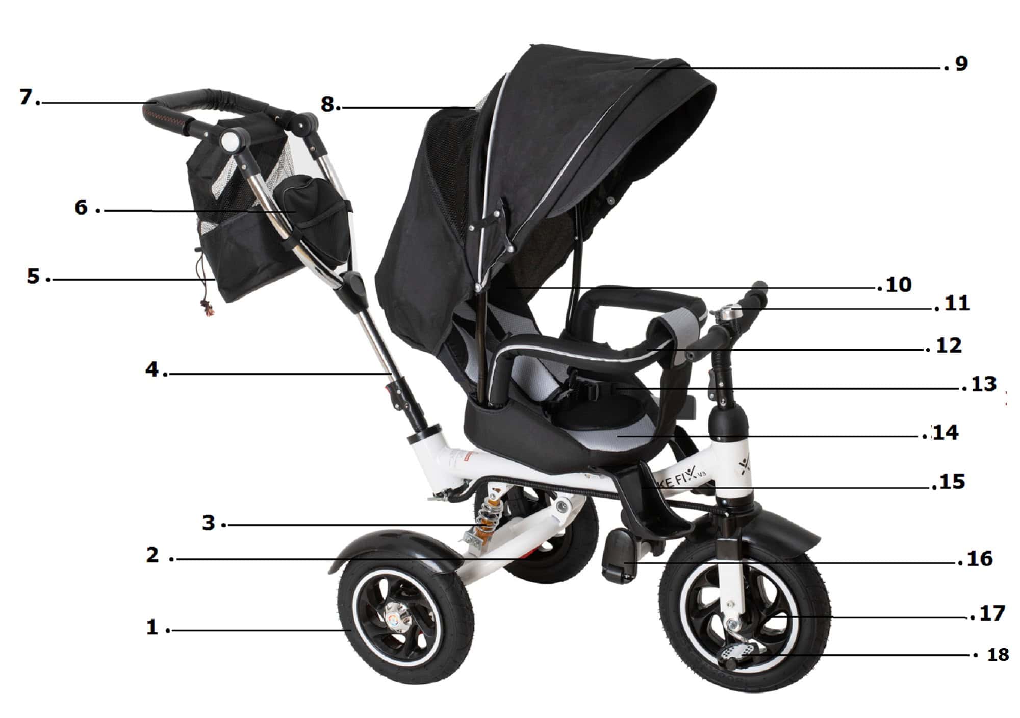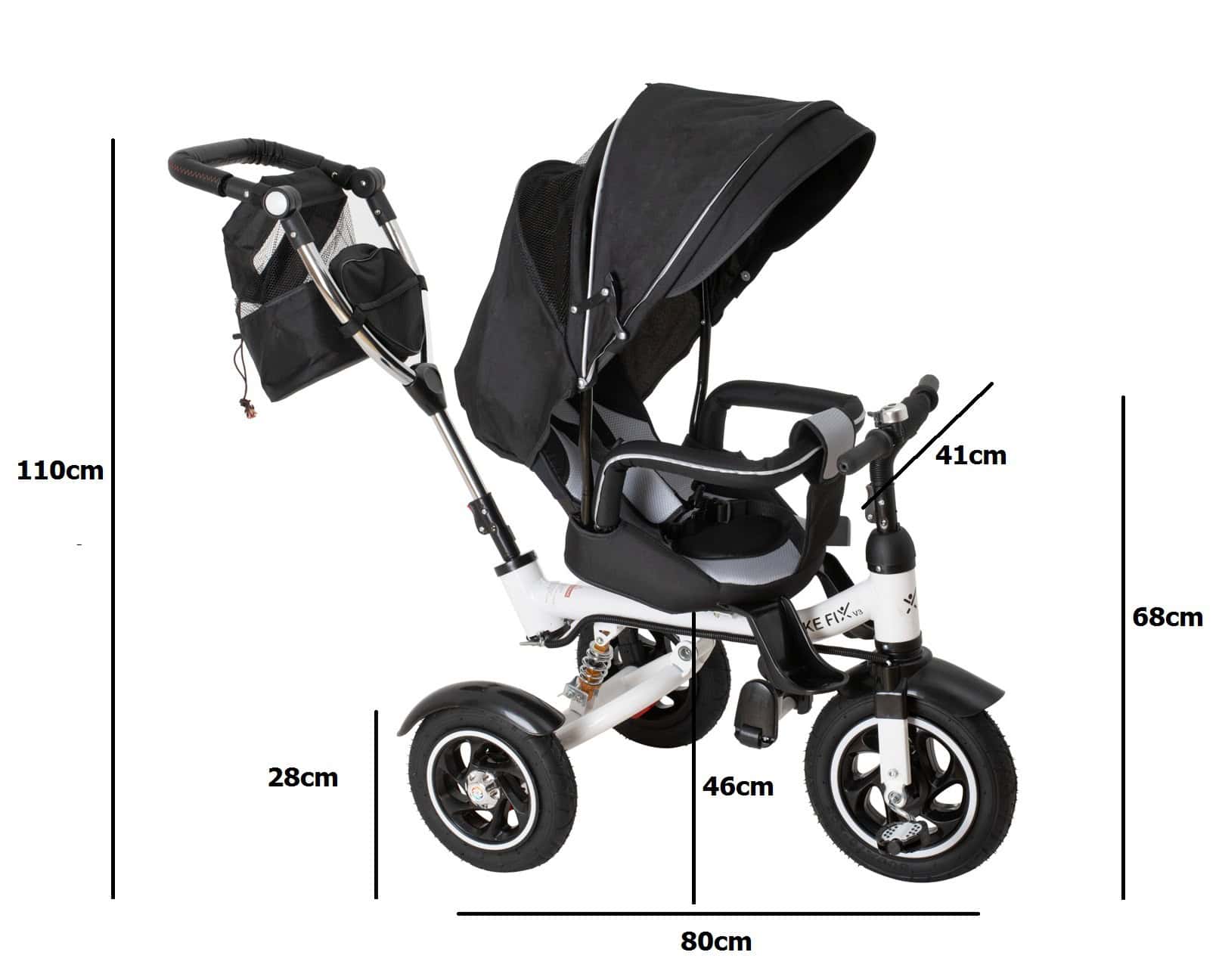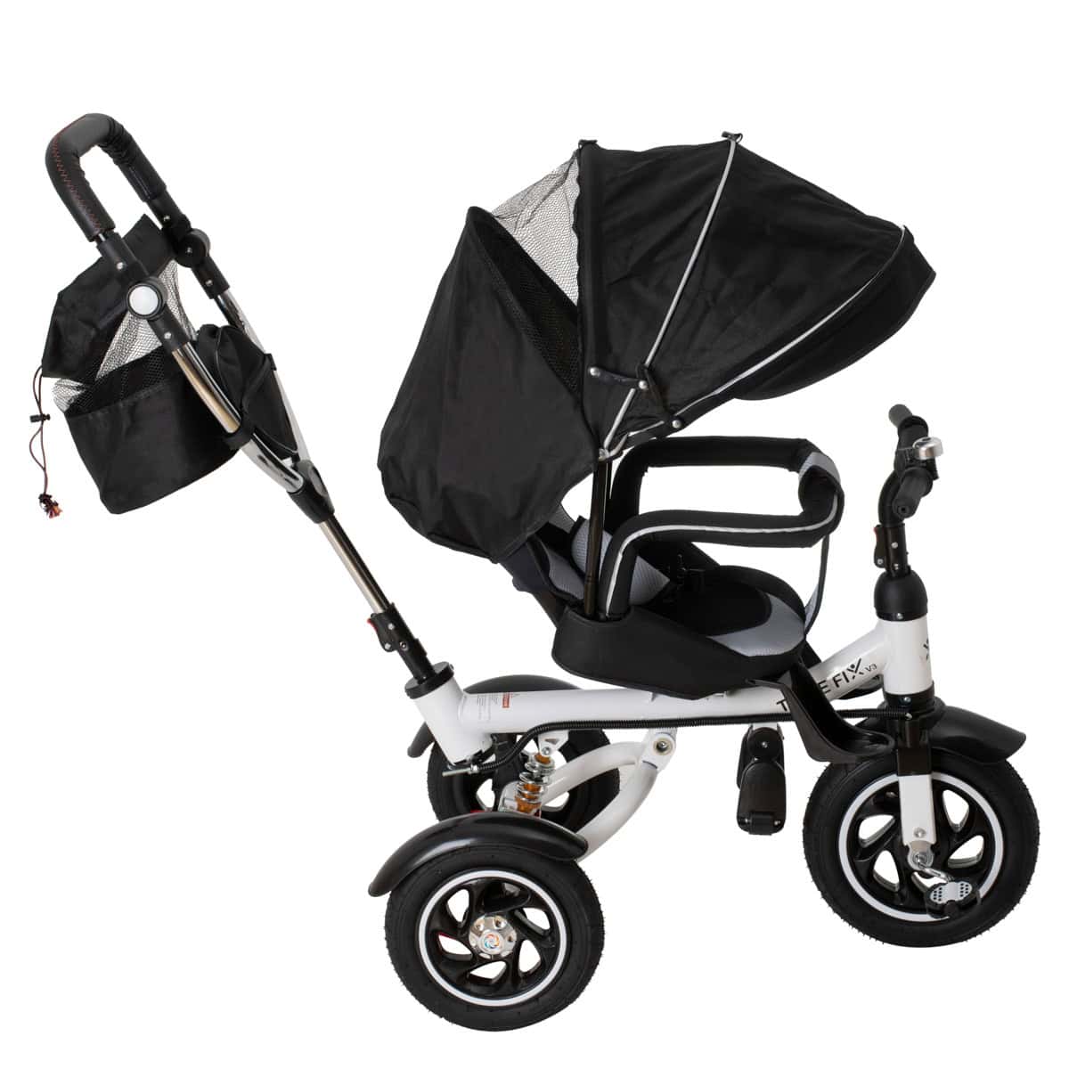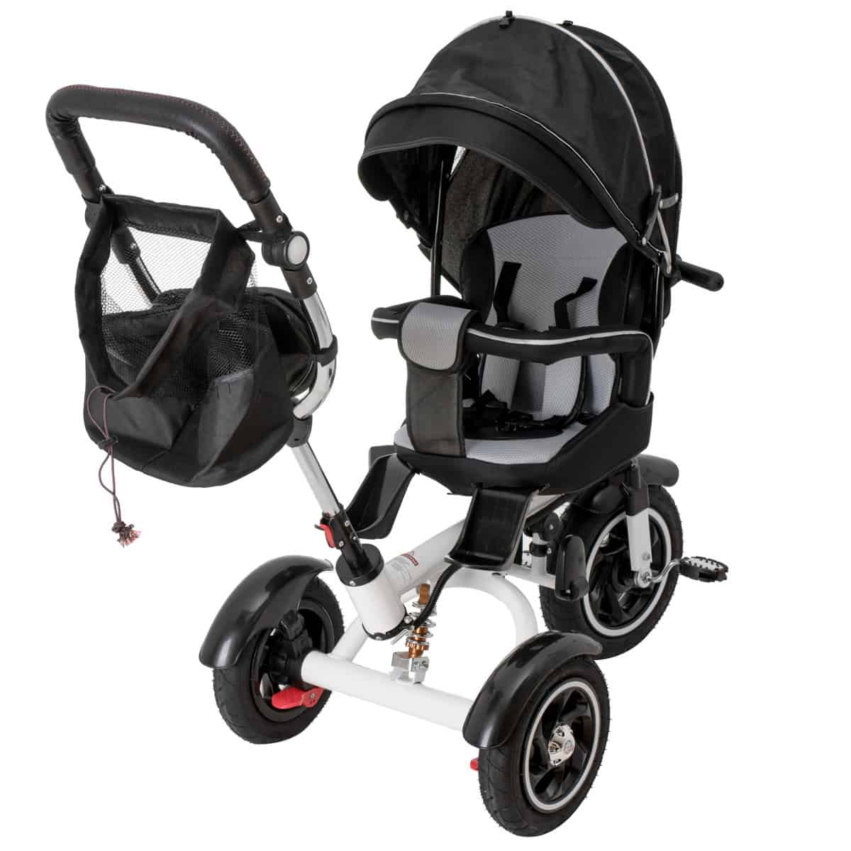 - Tricicleta 3in1 105x52x94 cm, sezut rotativ 360°, roti fara aer, copertina reglabila, negru Mob360 – produs disponibil în magazinul Mob360.
