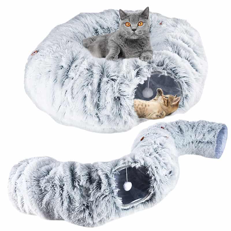 Tunel de joaca pentru pisici din plus, transformabil in pat rotund, 85 cm Mob360