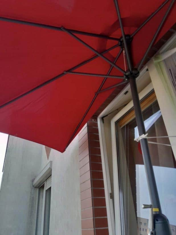 Umbrela balcon 270×250 cm, montaj pe perete, cu manivela si husa impermeabila, poliester 180g/mp, rosu Mob360 – produs disponibil în magazinul Mob360.