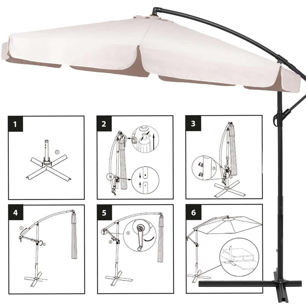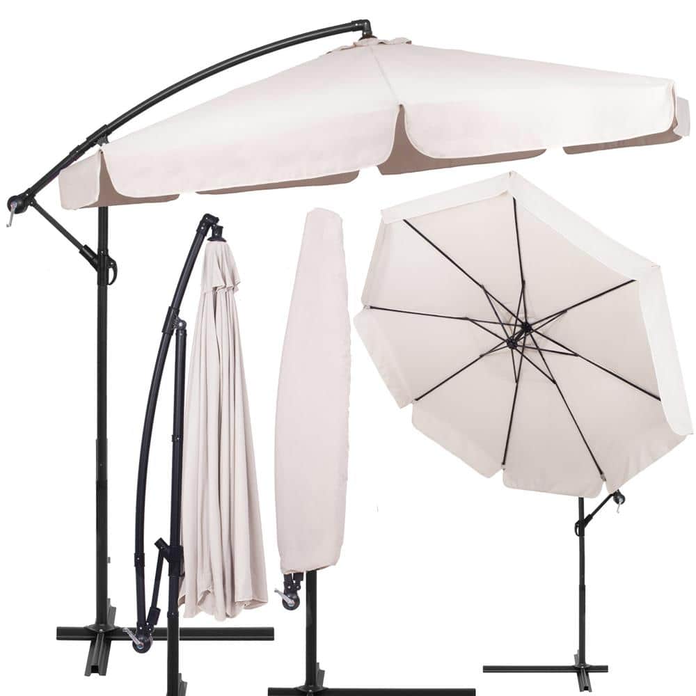 Umbrela de gradina cu brat lateral banana, cu husa, 300cm, bej Mob360