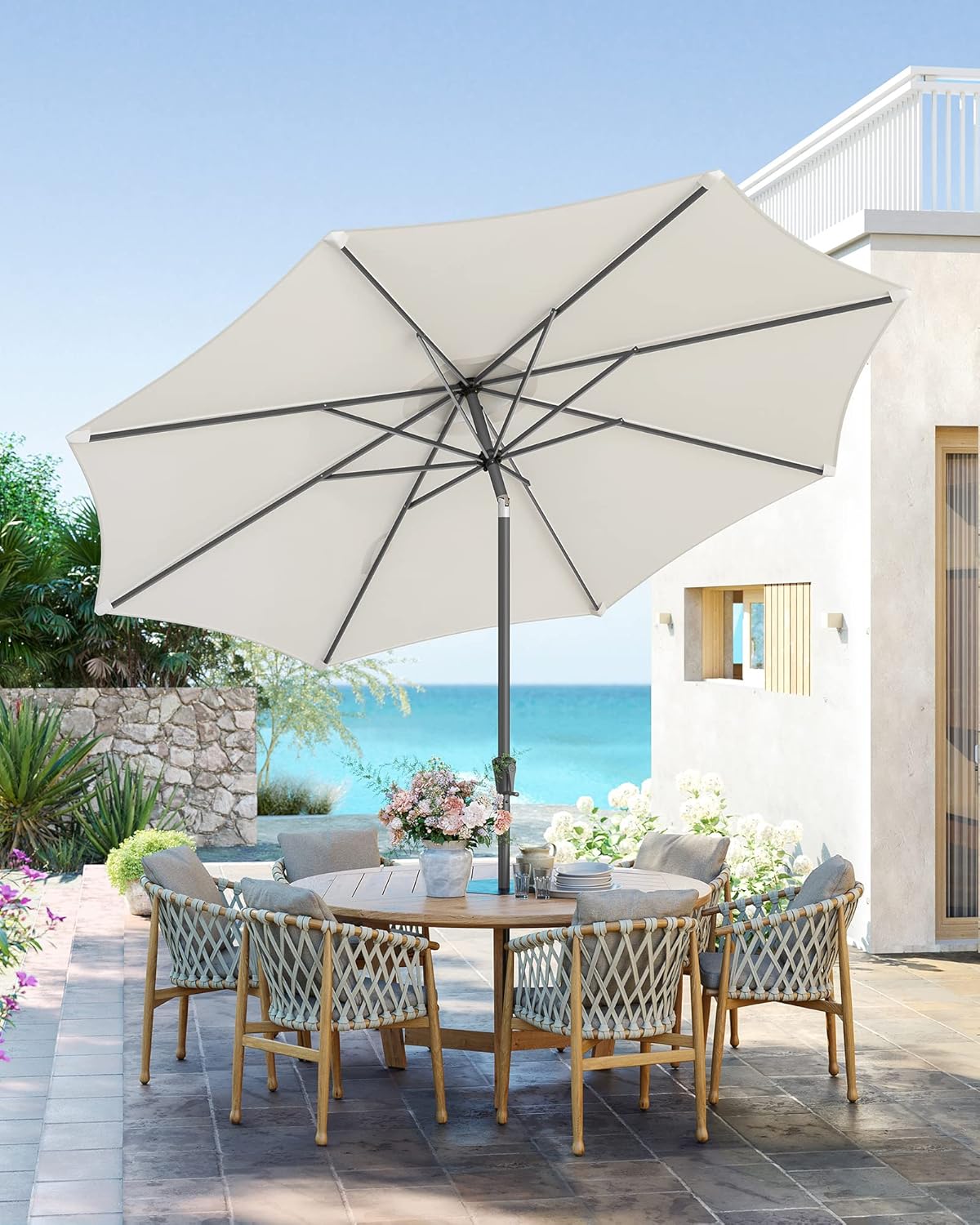 Umbrela de gradina cu manivela, 330 cm, UPF 50+, inclinare 30°, structura metalica cu 8 spite, bej Mob360