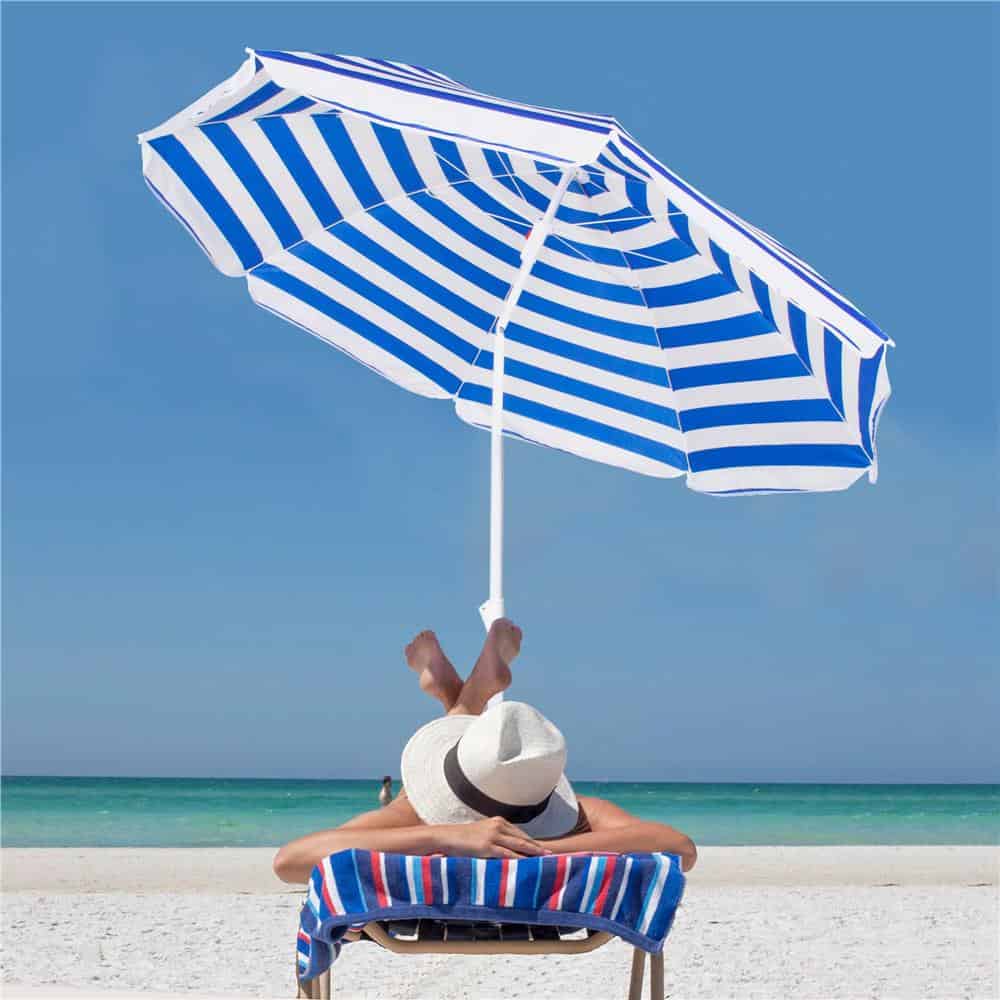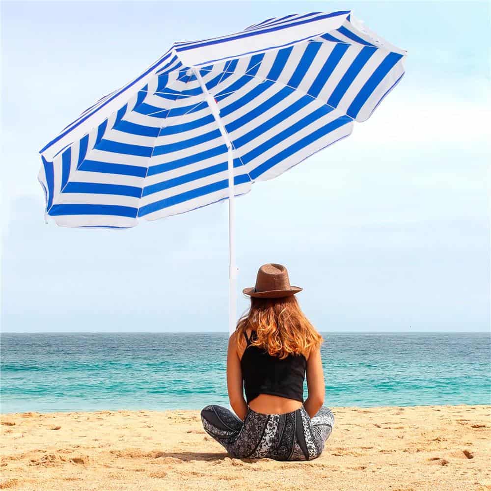 Umbrela de plaja pliabila cu inclinare reglabila, diametru 180 cm, albastru si alb Mob360 – produs disponibil în magazinul Mob360.