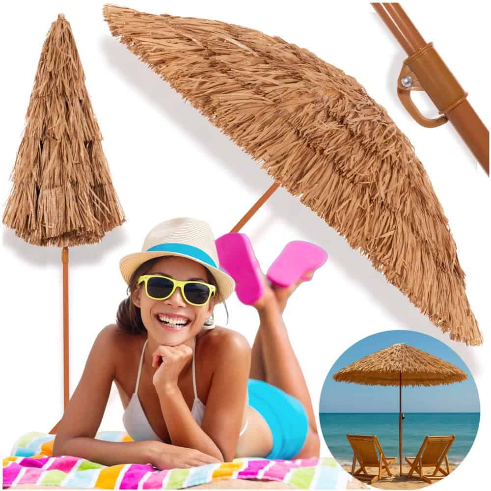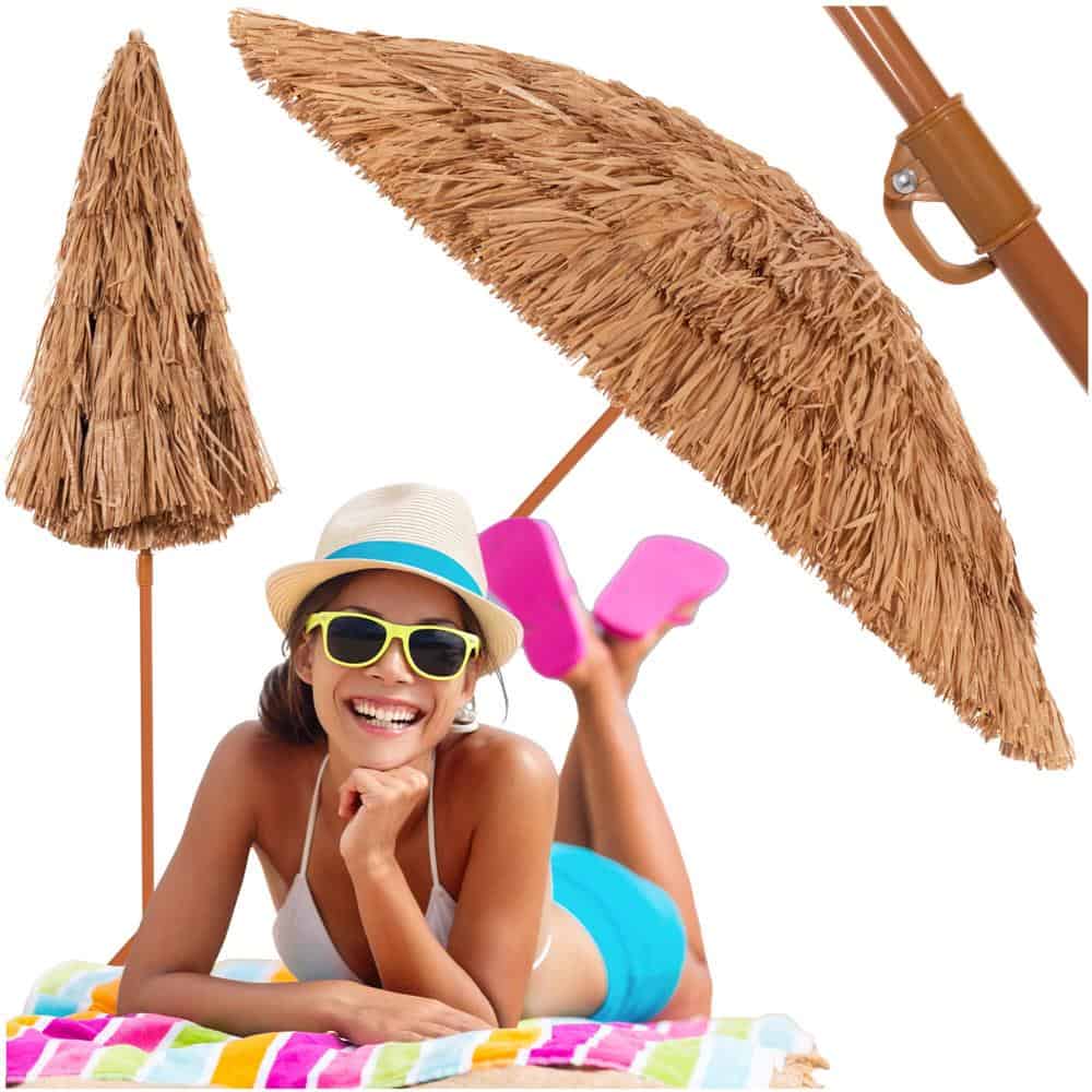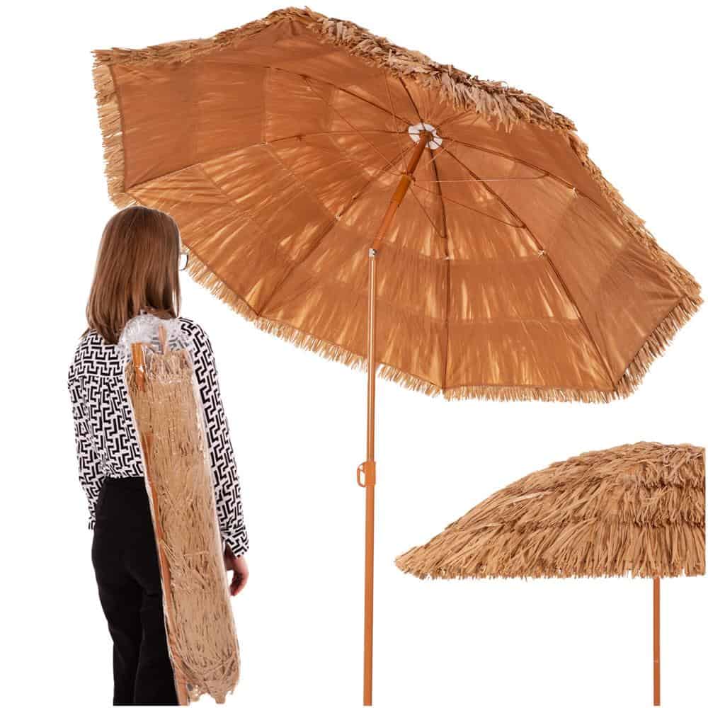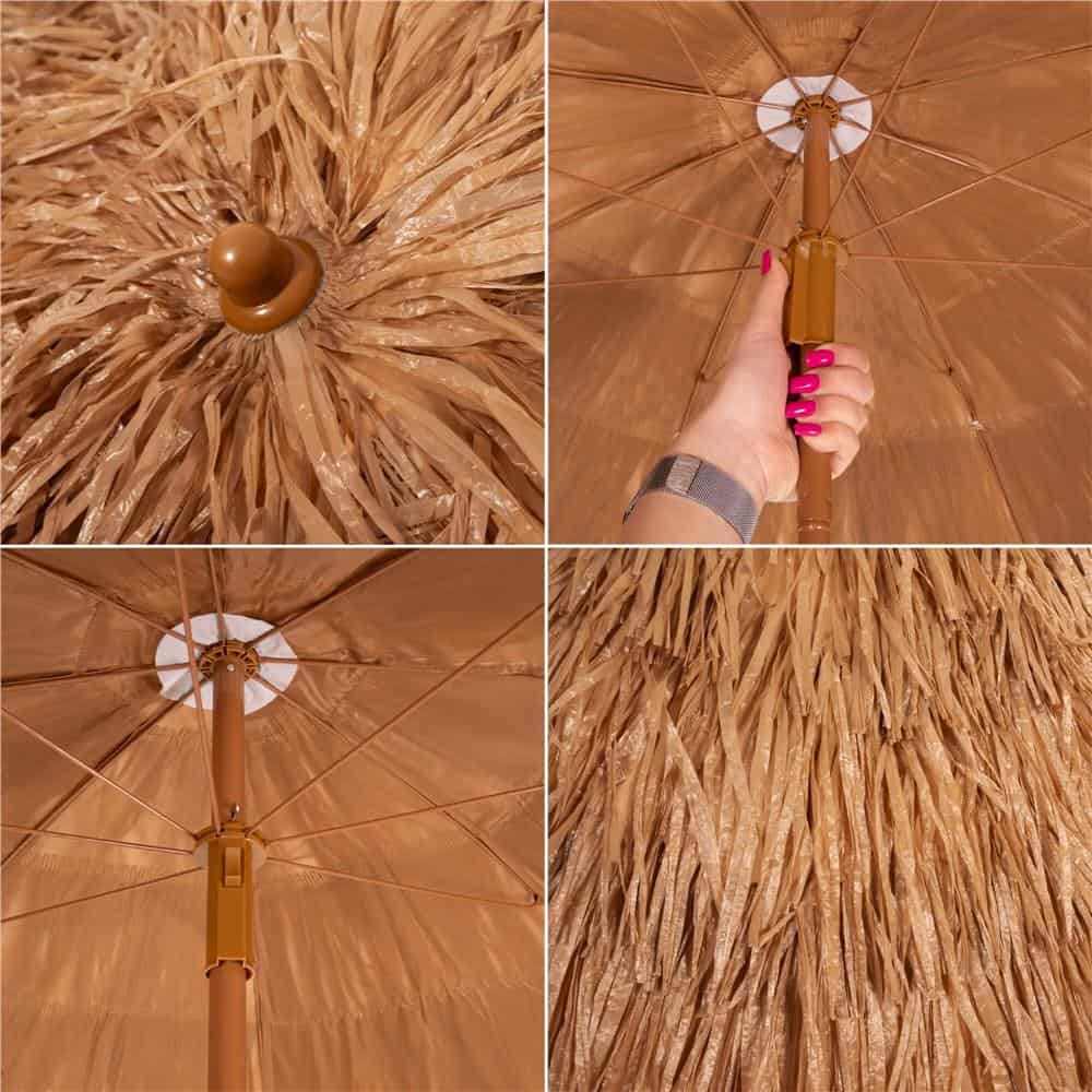 Umbrela de plaja tip hawai pliabila, cu inaltime si unghi reglabil, structura metalica, 160 cm, maro Mob360 – produs disponibil în magazinul Mob360.