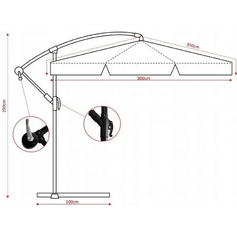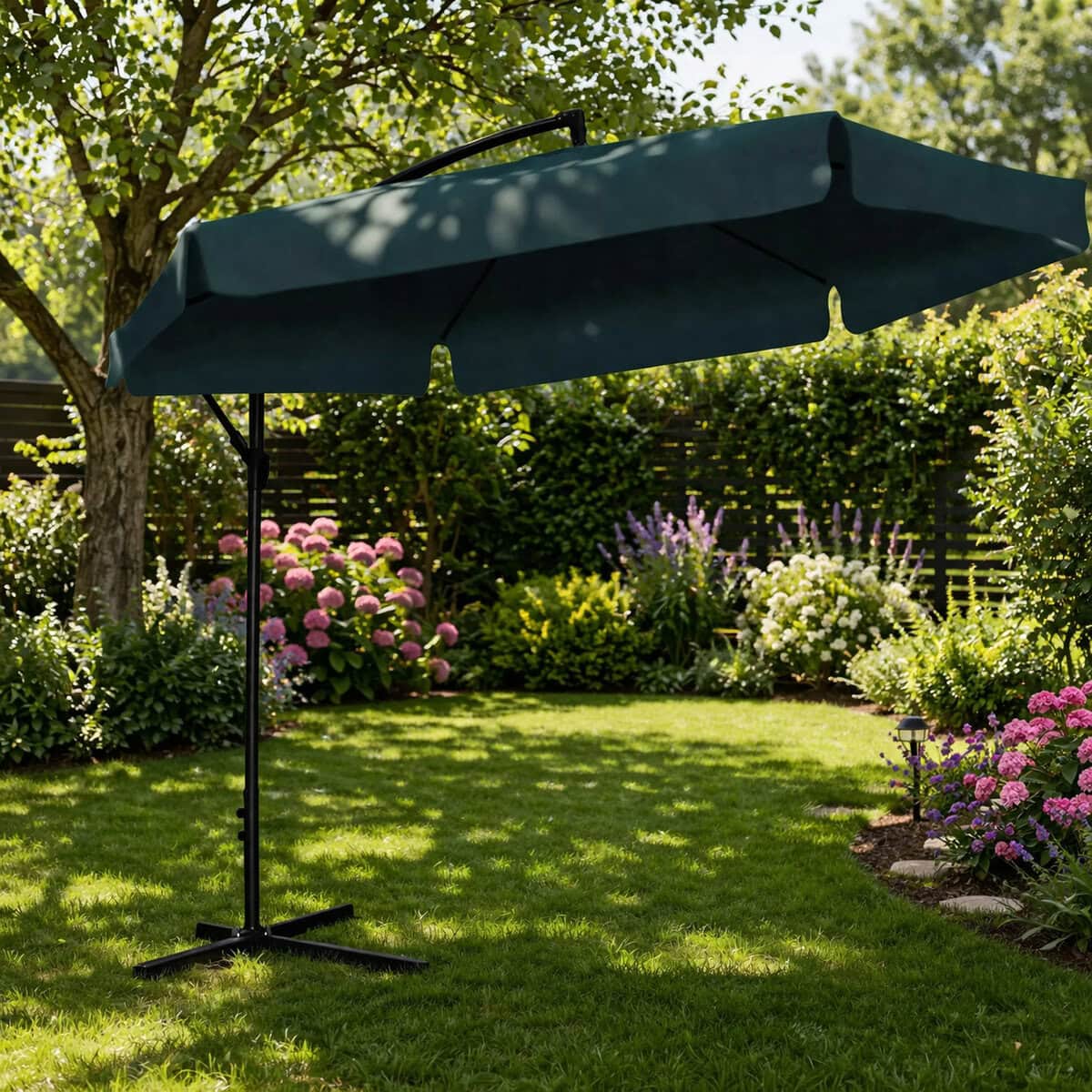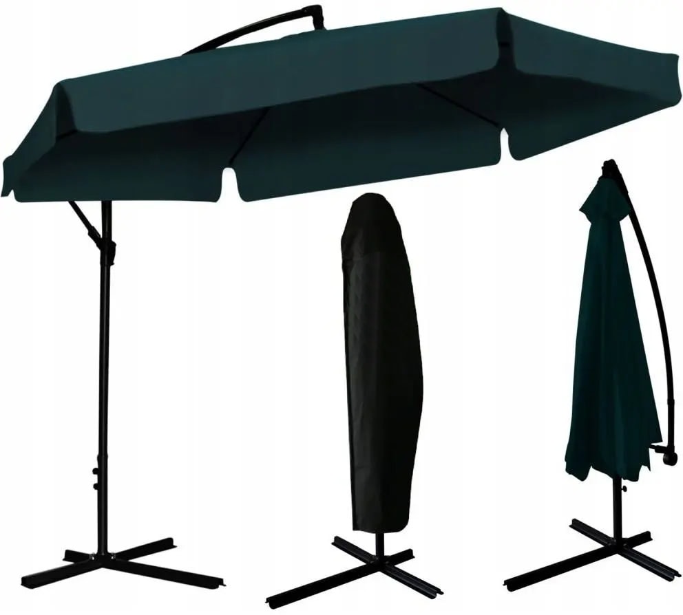 Umbrela gradina tip banana cu mecanism inclinare, impermeabila, diametru 300 cm, husa inclusa, verde Mob360