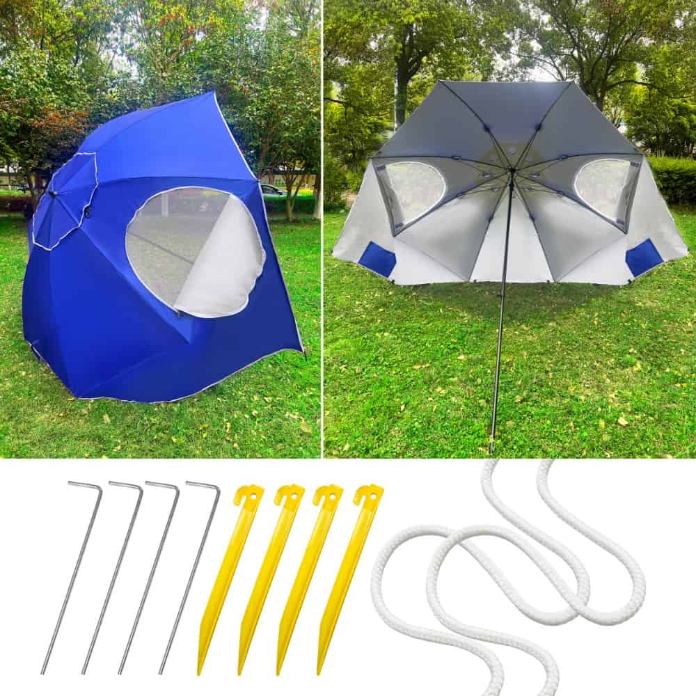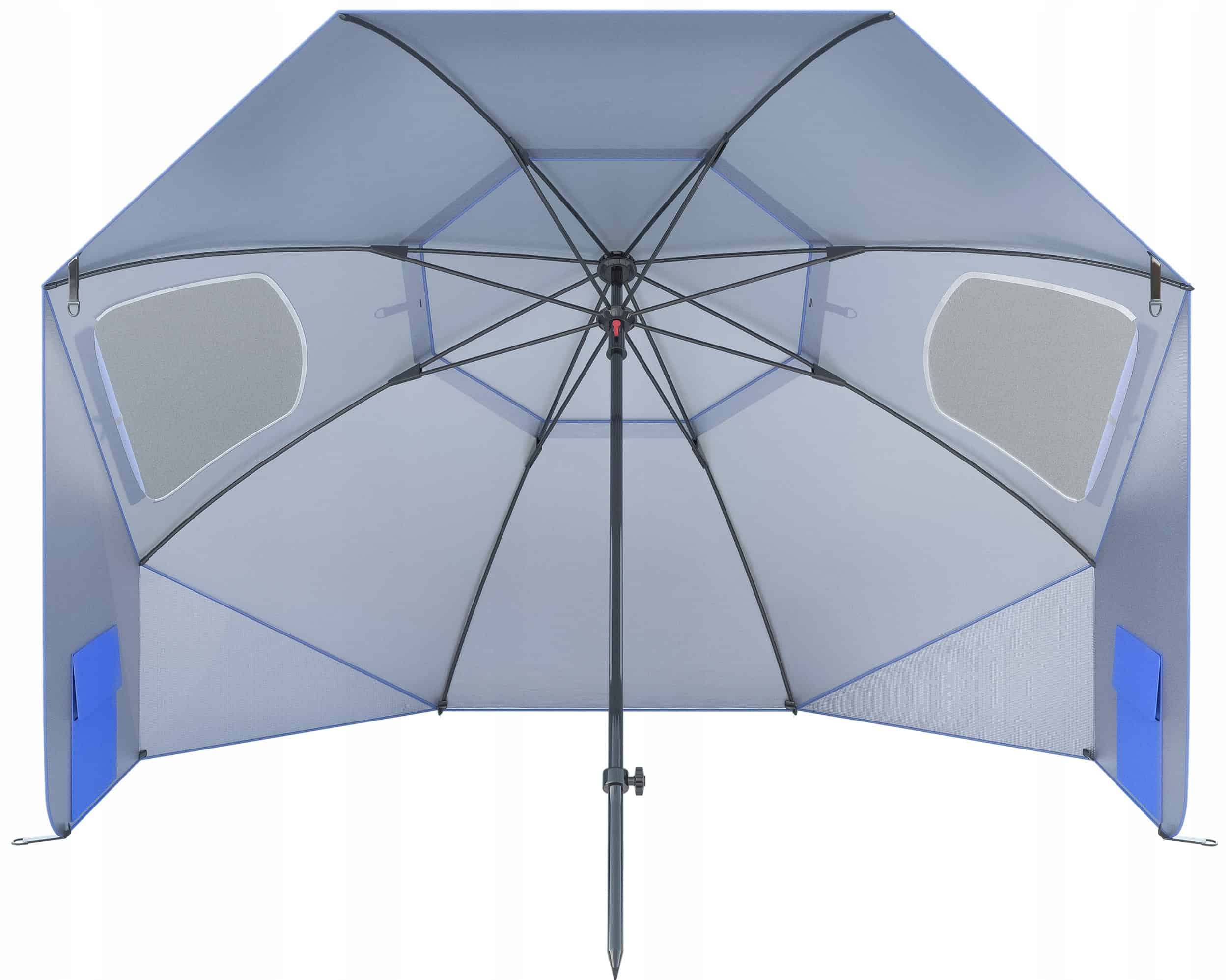 Umbrela plaja 3in1 215×205 cm, cu paravan lateral, fereastra si husa transport, material UV, albastru Mob360 – produs disponibil în magazinul Mob360.