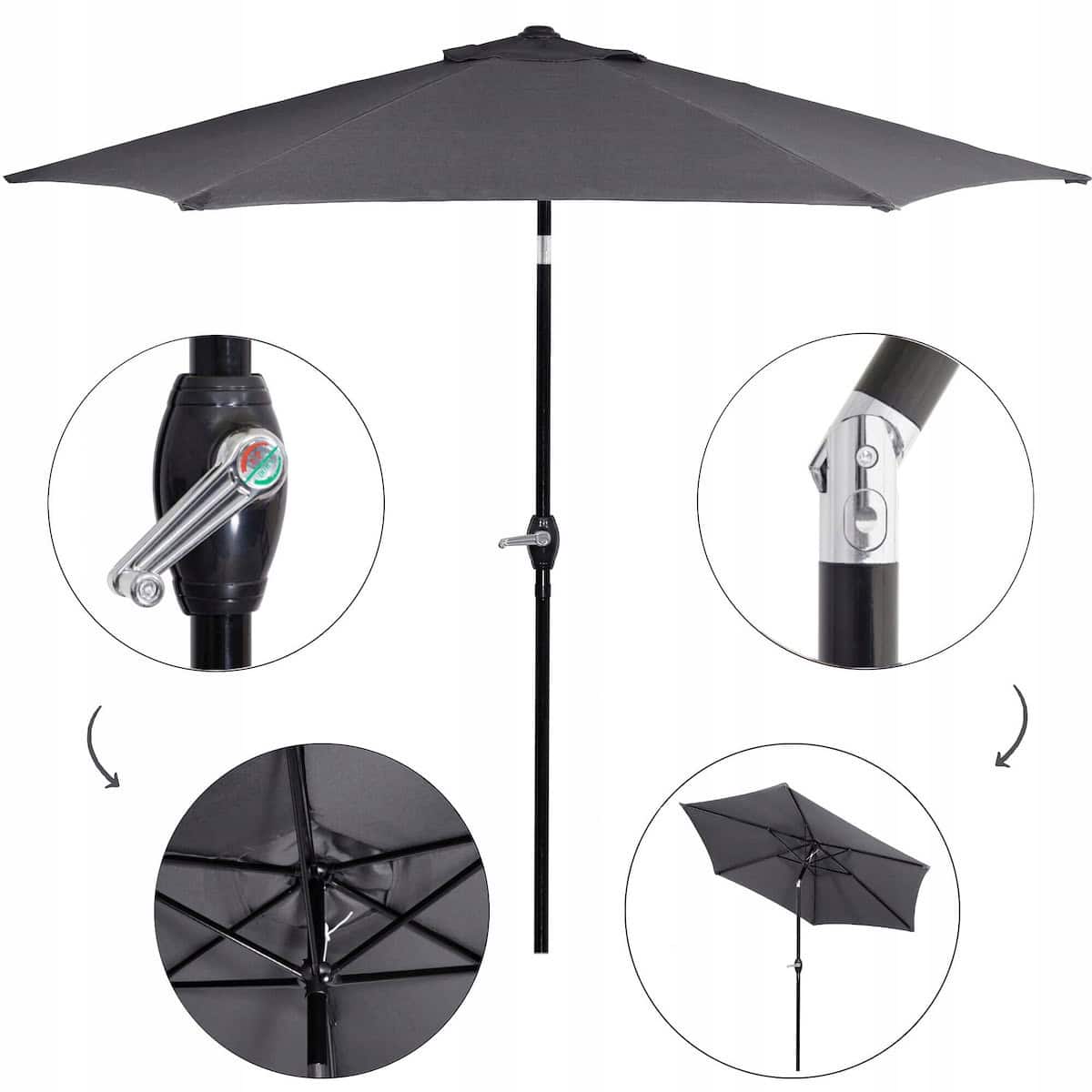 Umbrela terasa gradina, cu manivela si inclinare, GU21, diametru 260cm, gri antracit Mob360