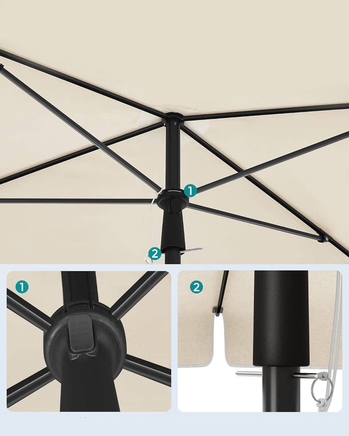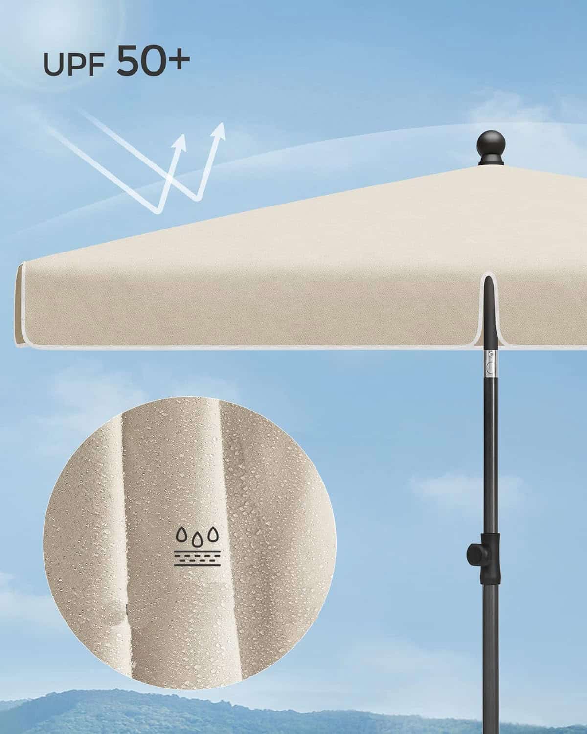 Umbrela terasa gradina sau plaja, cu inclinare 2 directii, protectie UV UPF 50+, husa inclusa, 200x125cm, bej Mob360