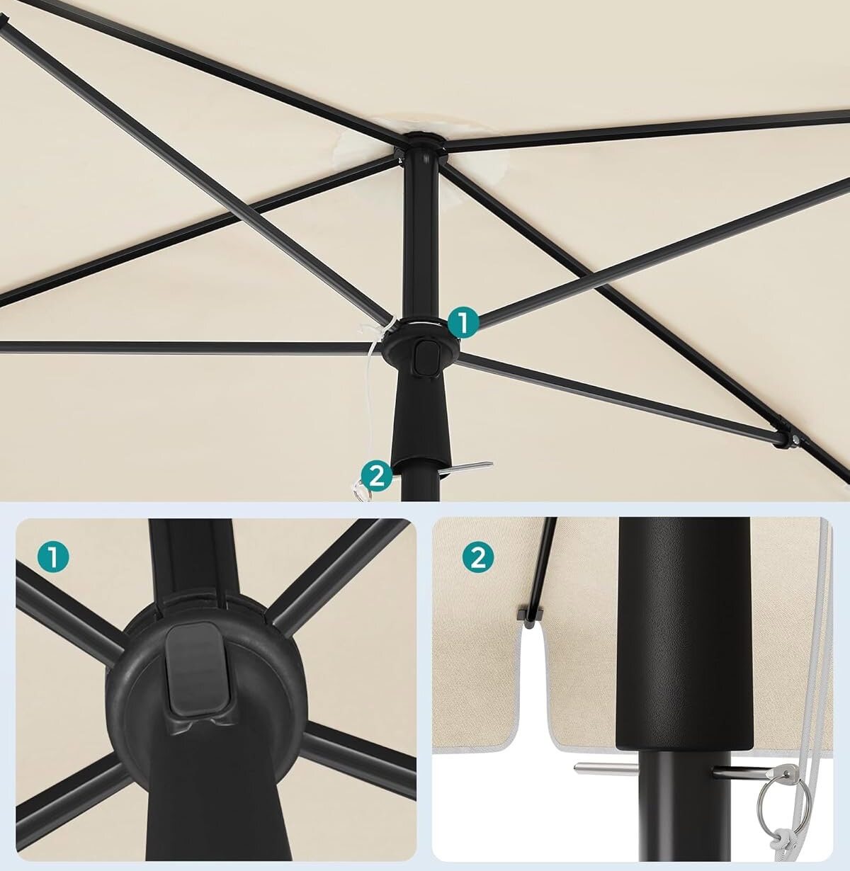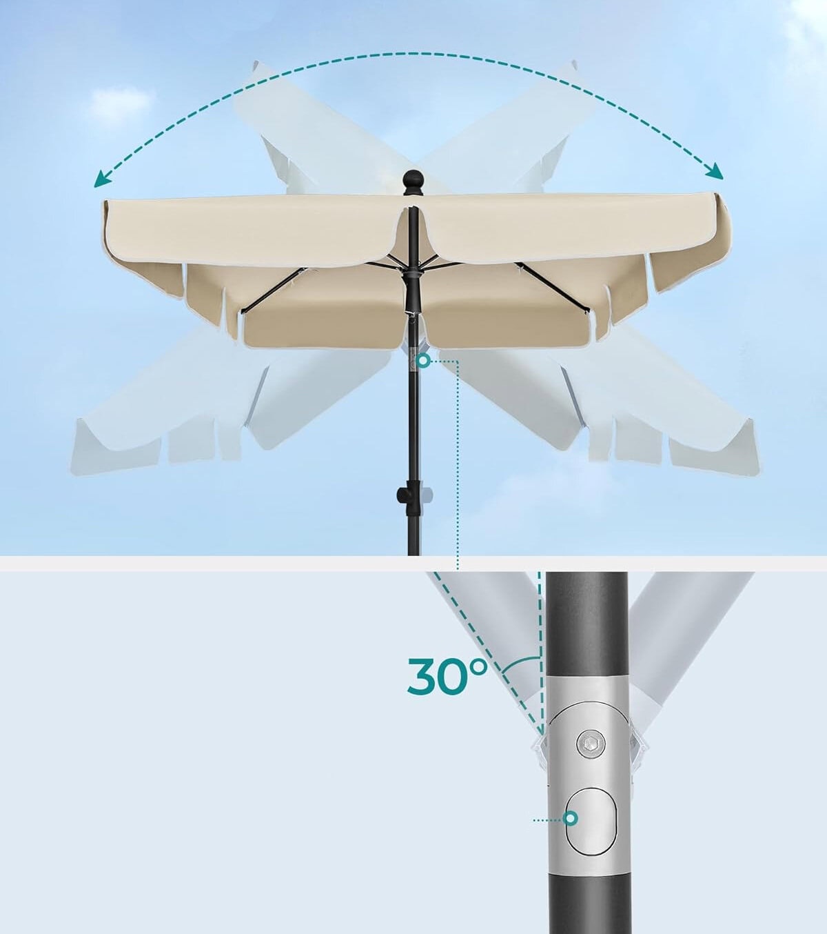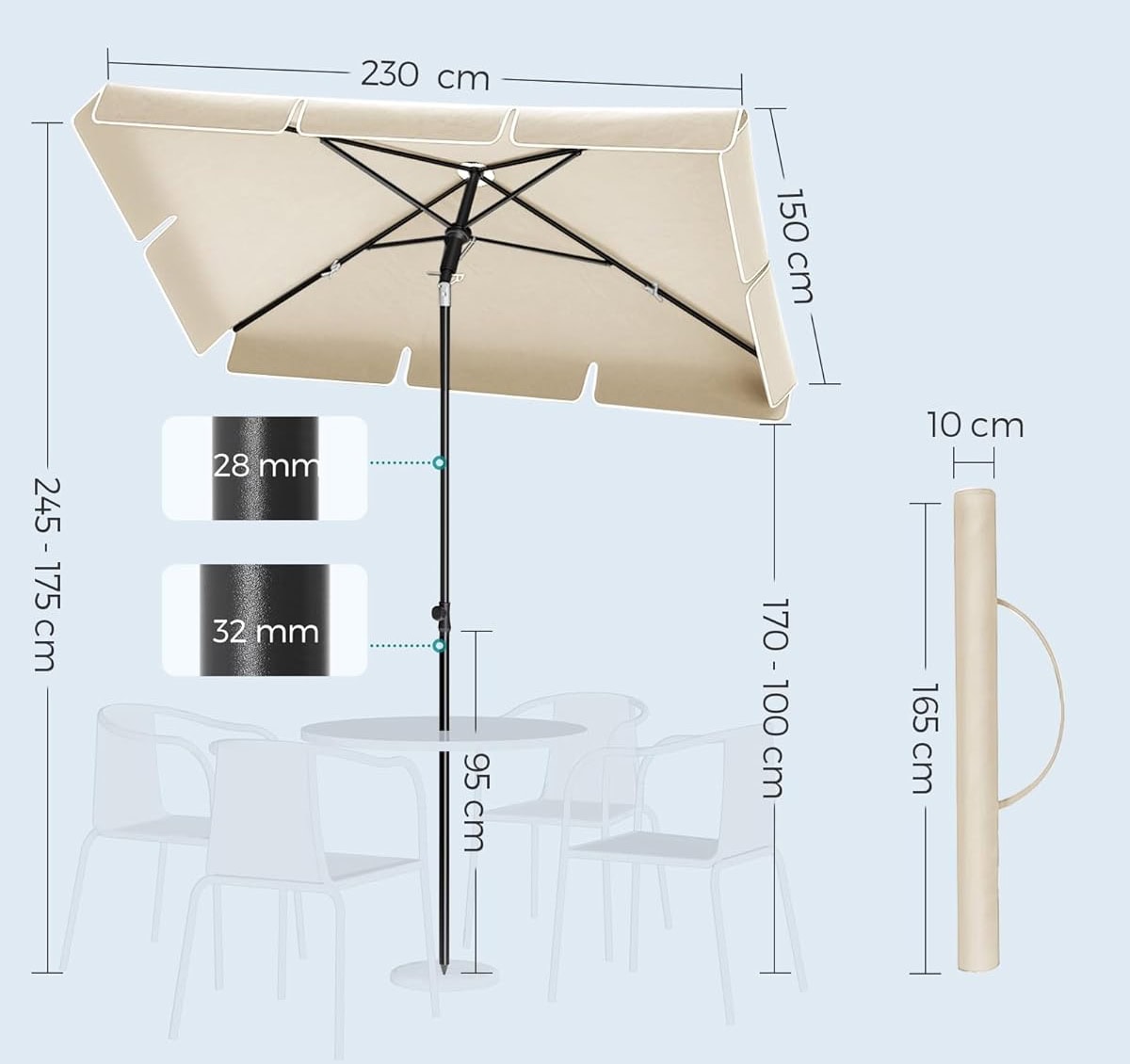 Umbrela terasa sau gradina reglabila, inclinare 2 directii, protectie UV UPF 50+, husa inclusa, 230×150 cm, bej Mob360