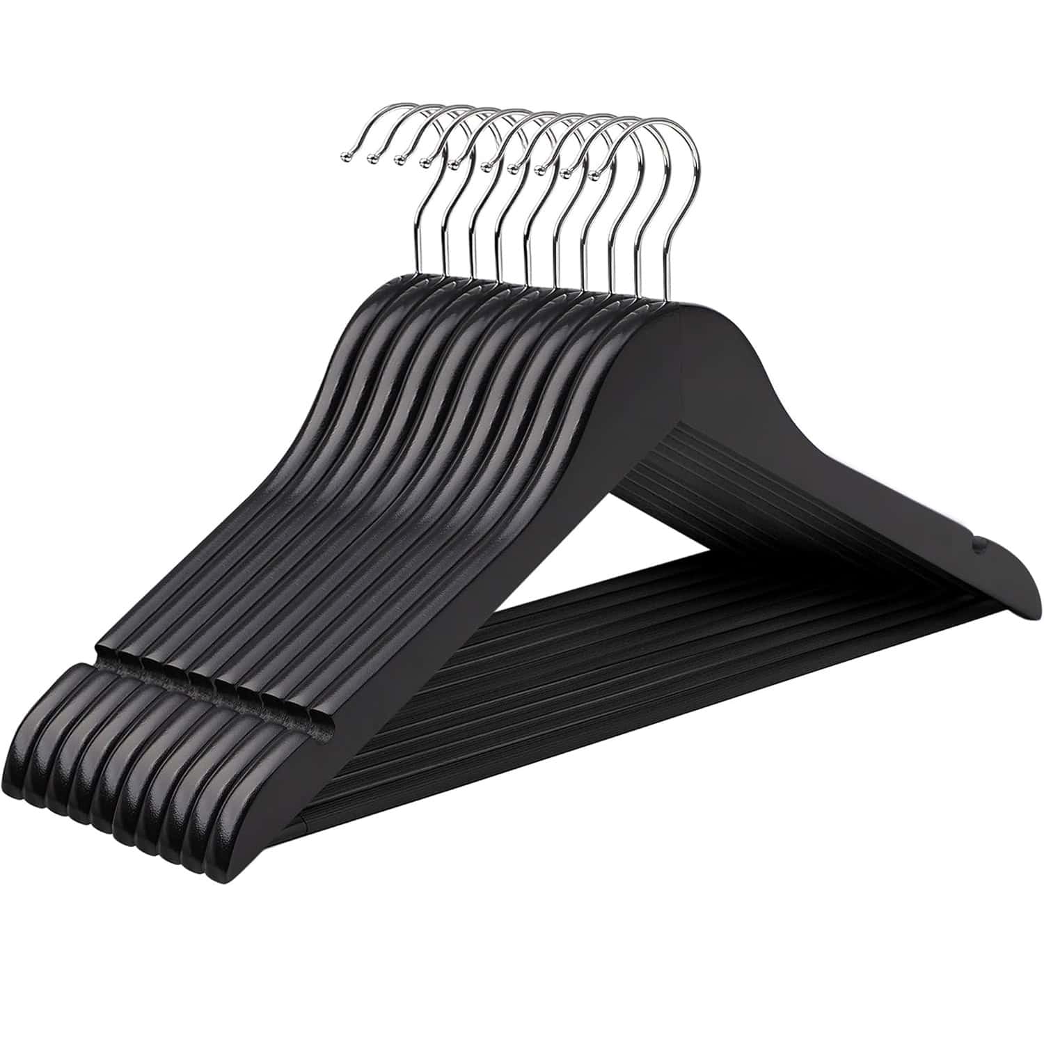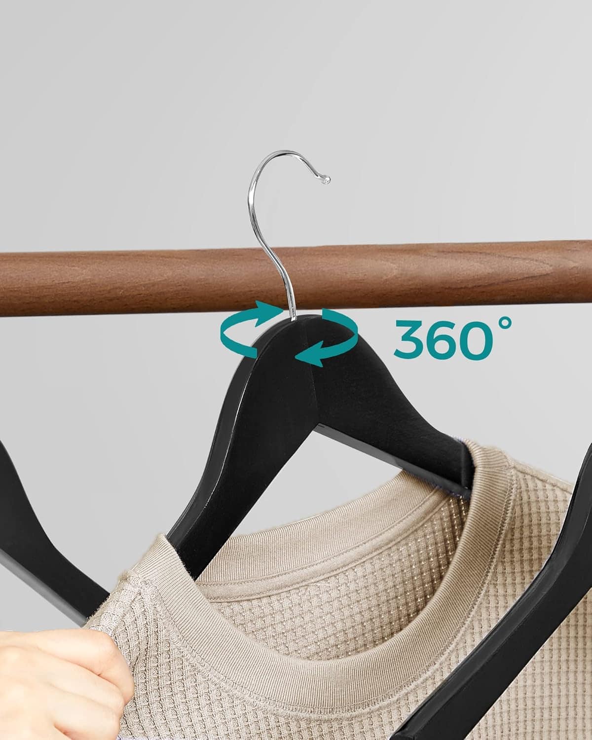 Umerase lemn set 10 bucati, cu bara pantalon antialunecare, carlig rotativ 360°, 45×23 cm, negru Mob360 – produs disponibil în magazinul Mob360.