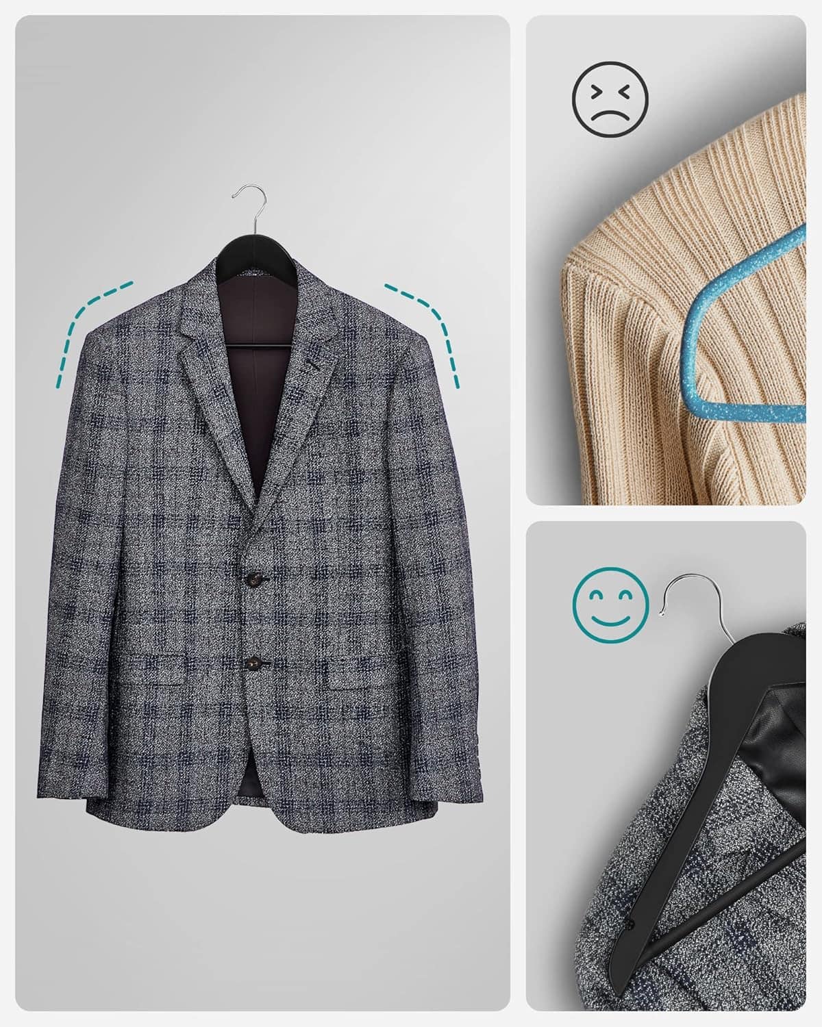 Umerase lemn set 10 bucati, cu bara pantalon antialunecare, carlig rotativ 360°, 45×23 cm, negru Mob360