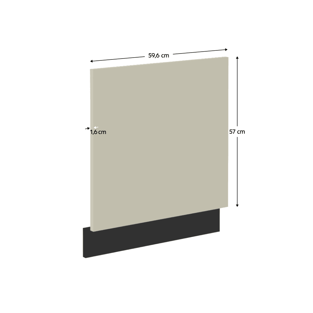 Material: DPD melaminat Culoare: caşmir Dimensiuni (Lxlxh): 59,6×1,6×57 cm Uşă pentru maşină de spălat vase încorporabilă Cu plintă/soclu Culoarea plintei: negru mat Design modern Fără mâner Se livrează dezasamblată Dulapurile inferioare se livrează cu plintă inclusă, fără blat de lucru.Opţiunea de a achiziţiona blat de lucru din marmură roma la preţul de 379 Lei/m. Opţiunea de a achiziţiona o chiuvetă universală LAY ON.