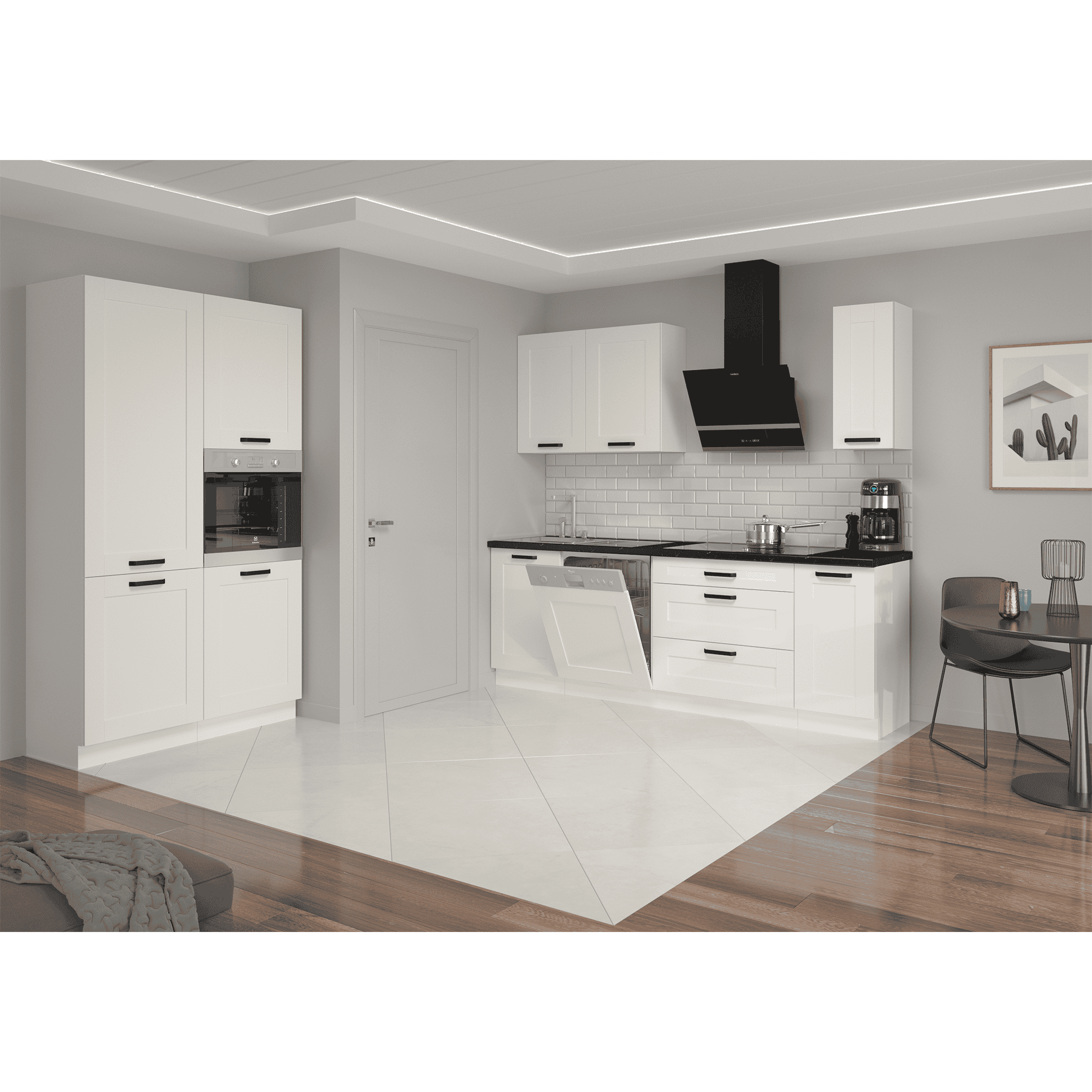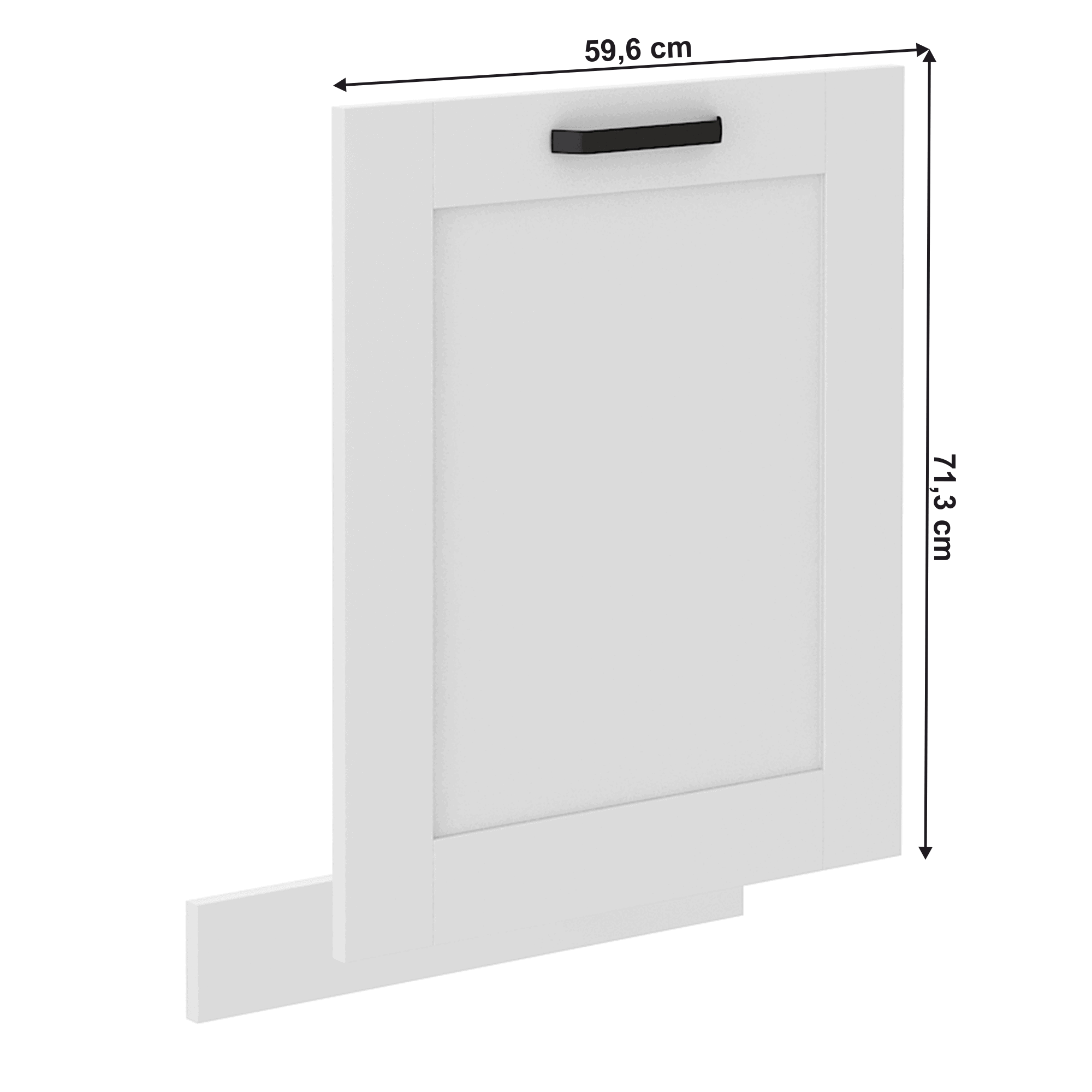 Material: laminat DTD Culoare: albă Dimensiuni (LxAxÎ): 59,6×1,6×71,3 cm Uşă pentru maşină de spălat vase încorporabilă, Cu mâner metalic, Culoarea mânerului: neagră, Grosime uşă: 2 cm Cu şină inferioară/plintă, Culoare plintă: alb, Design dinamic modern, Livrată dezasamblată, Opţiunea de a cumpăra o chiuvetă universală LAY ON, Dulapurile inferioare sunt furnizate împreună cu şina inferioară, Fără blat de lucru. Opţiunea de a achiziţiona blat de lucru din stejar artizan stejar artizan la preţul de 399 lei/m sau marmură roma la preţul de 379 lei/m. Opţiunea de a achiziţiona o chiuvetă universală LAY ON.