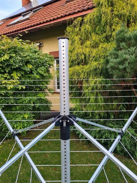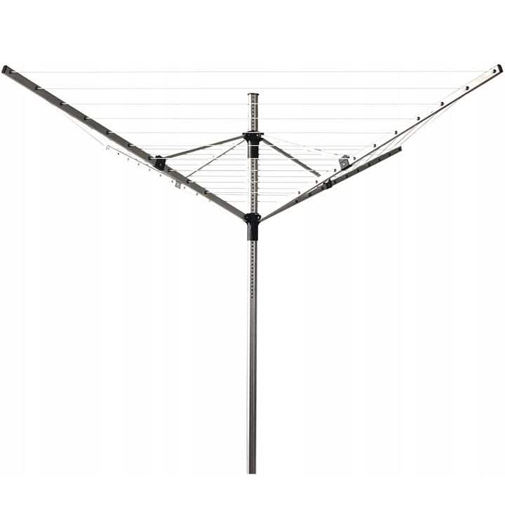 Specificatii Inaltime 180 cm Numarul de brate 4 Reglare inaltime 180-200 cm 50 m spatiu de uscare Constructie durabila Stalp central si brate din aluminiu Pliabil – asigura transport si depozitare usoara Rezistent la conditiile meteorologice Datorita acestui lucru, scurtam timpul de uscare si contribuim la mentinerea prospetimii hainelor noastre. Fabricat din materiale de inalta calitate, uscatorul de rufe de gradina este uscatorul perfect pentru tine la un pret accesibil.Care este solutia ideala pentru a monta rapid si oriunde uscatorul pe sol, fara a fi nevoie de betonare. Doar lipiti-l in pamant.Rezistent la toti factorii externi si la rugina, garanteaza multi ani de utilizare. Cadrul este reglabil pe inaltime si va permite sa agatati rufe pana la 50 m. Instalare usoara Alegeti locul potrivit pentru a instala uscatorul. Asigurati-va ca exista suficient spatiu pentru ca bratele sa se roteasca liber. Introduceti stalpul in varful de pamant si introduceti-l in pamant. Folosind mecanismul de ridicare, ridicati, desfaceti si blocati bratele. Agatati rufele pe linii. Dupa utilizare, eliberati mecanismul de ridicare.