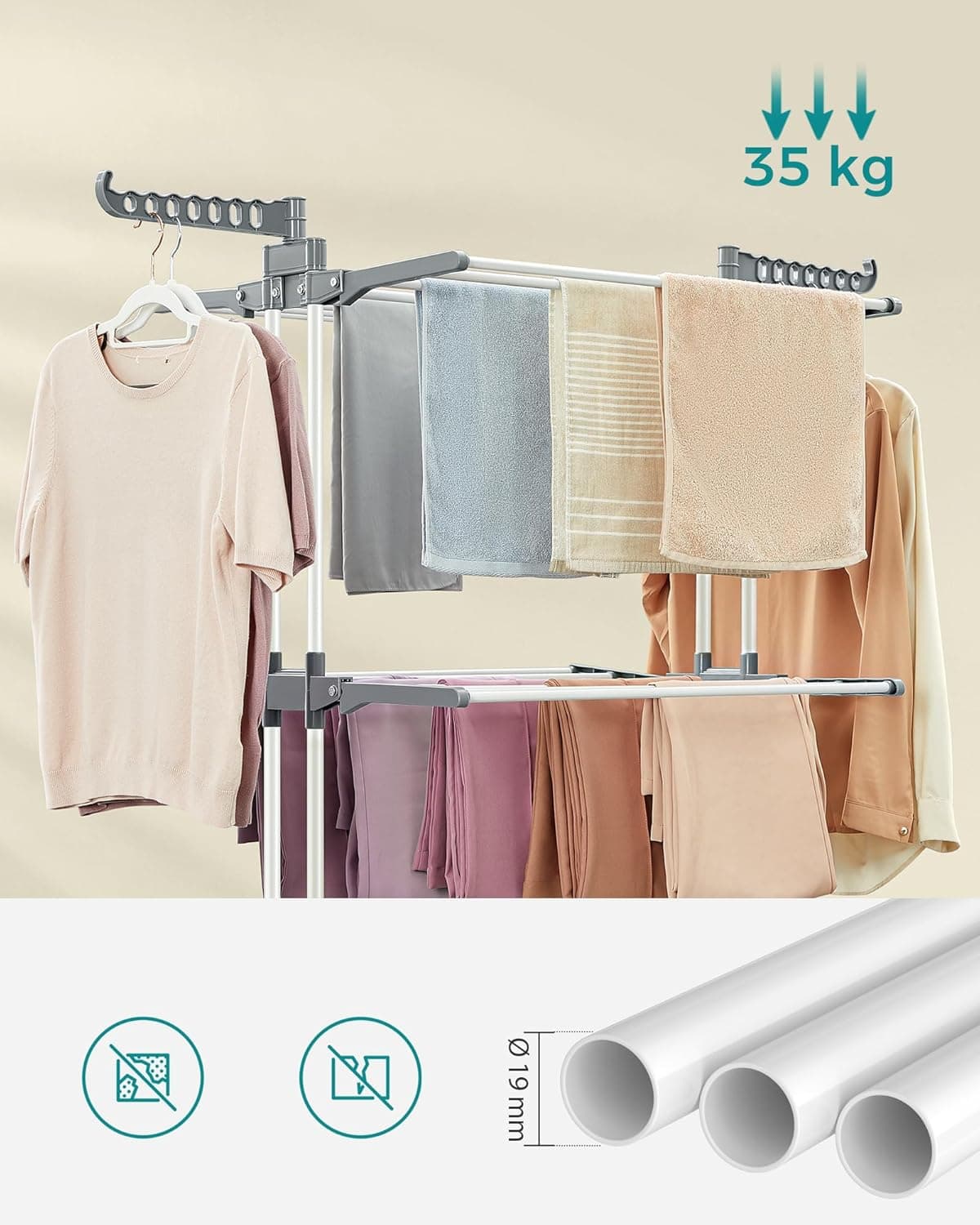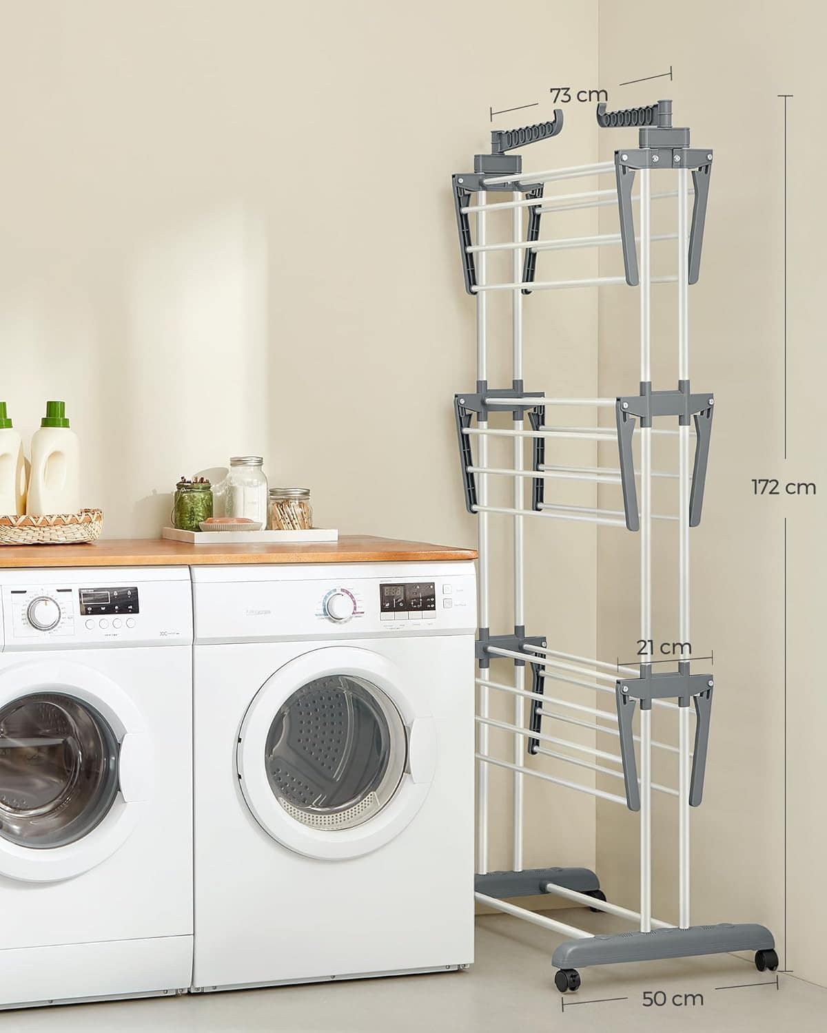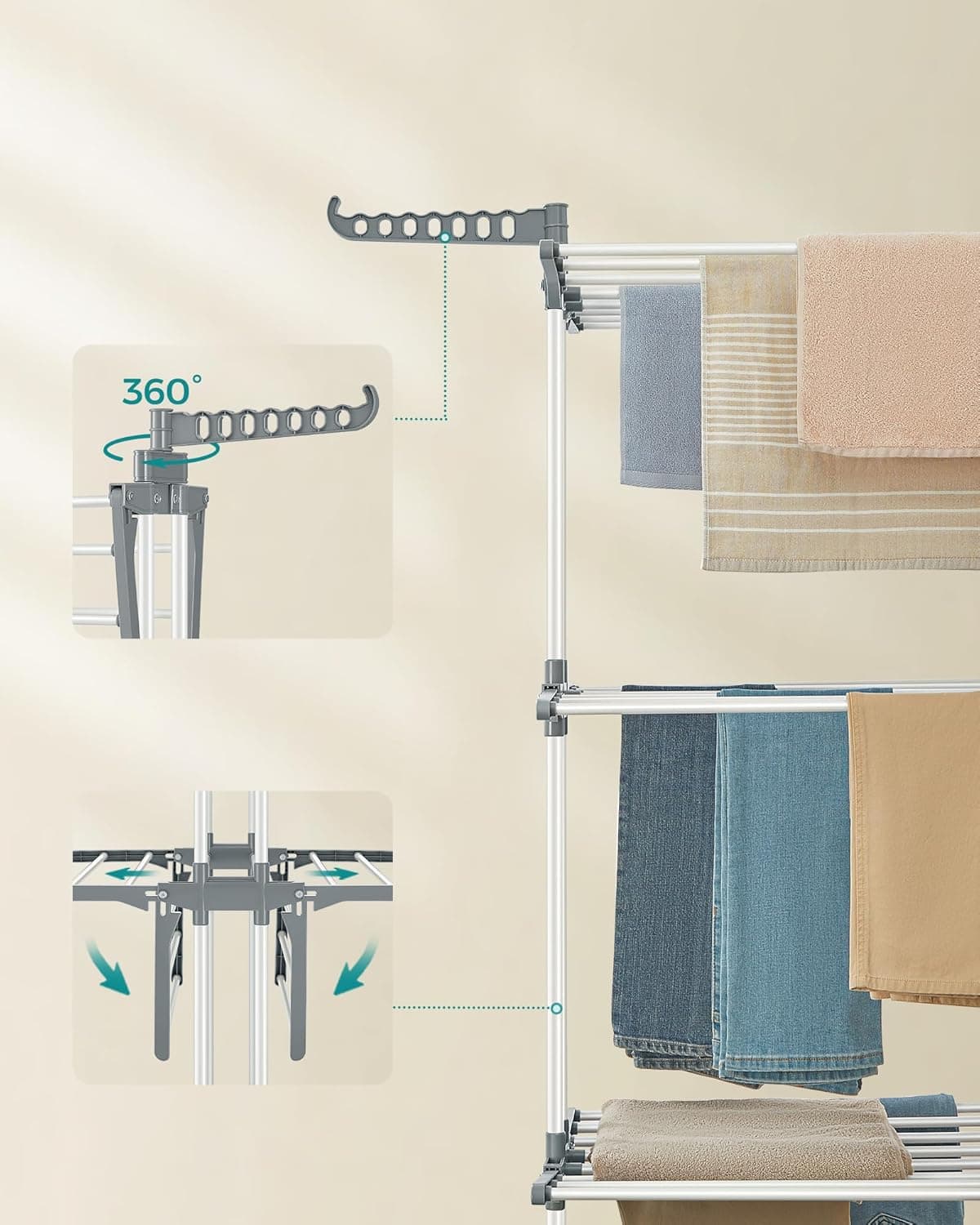 - Uscatorul de rufe pliabil ofera spatiu generos pentru uscarea hainelor, fiind ideal pentru familie. Designul pe mai multe niveluri si aripile laterale permit organizarea eficienta, iar rotile faciliteaza mutarea usoara oriunde ai nevoie. Caracteristici principale: