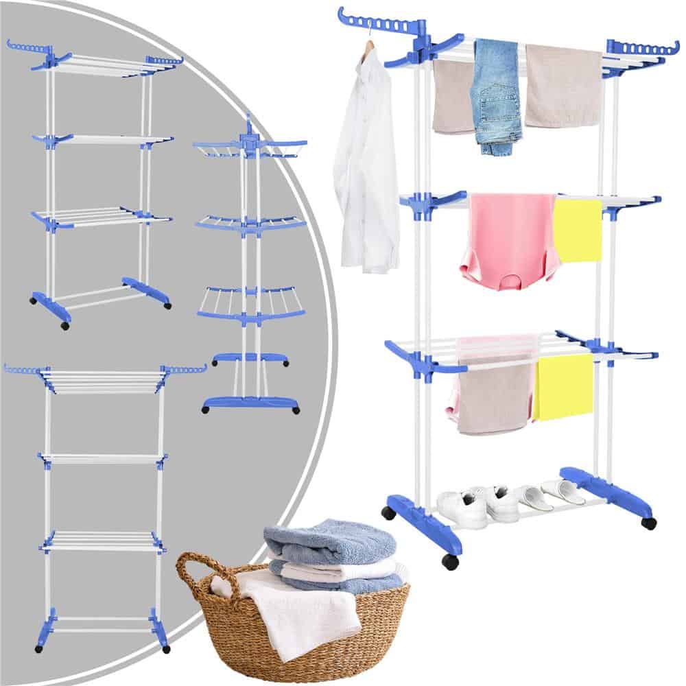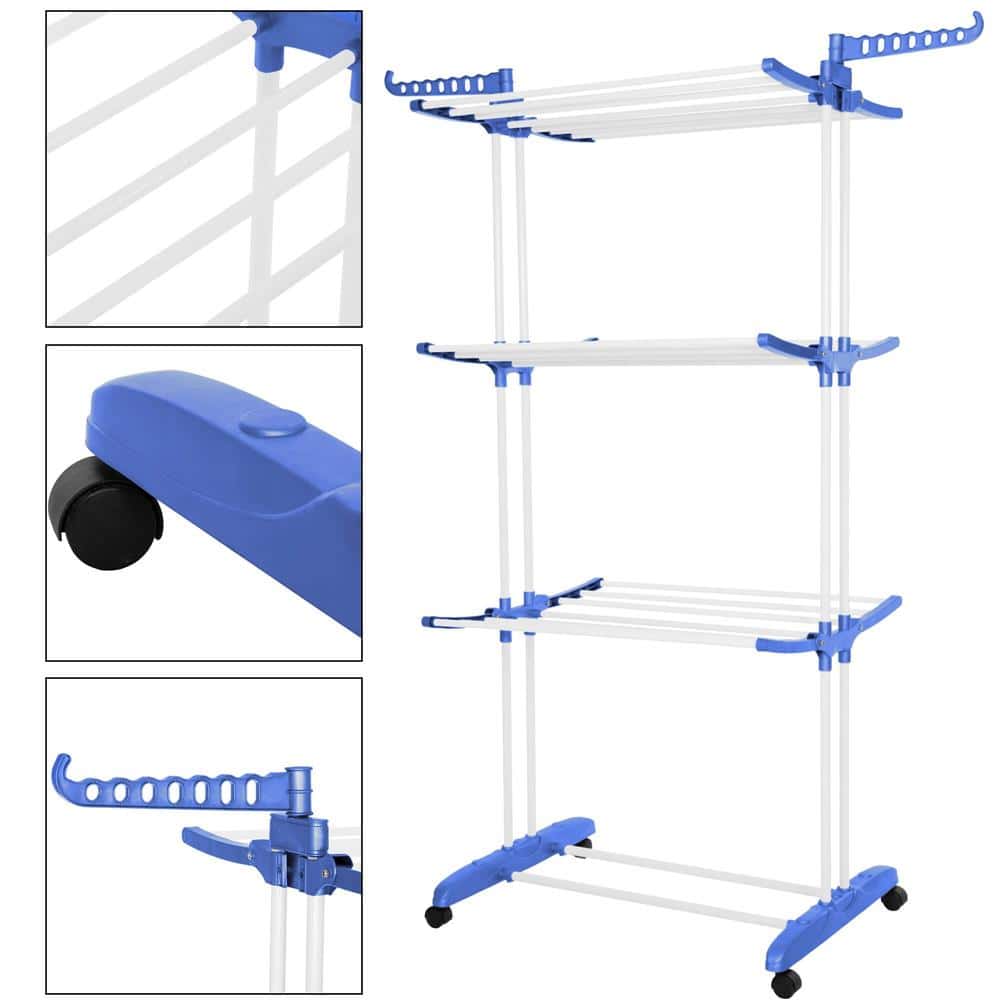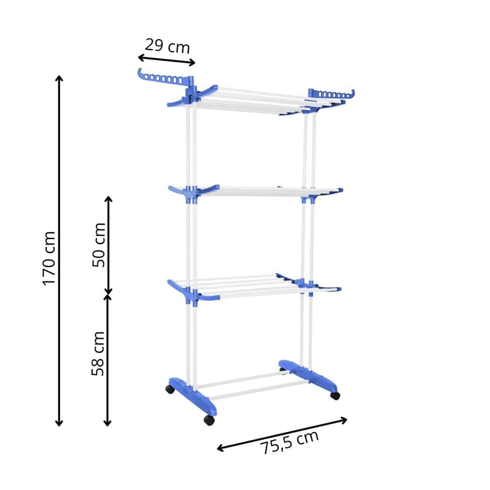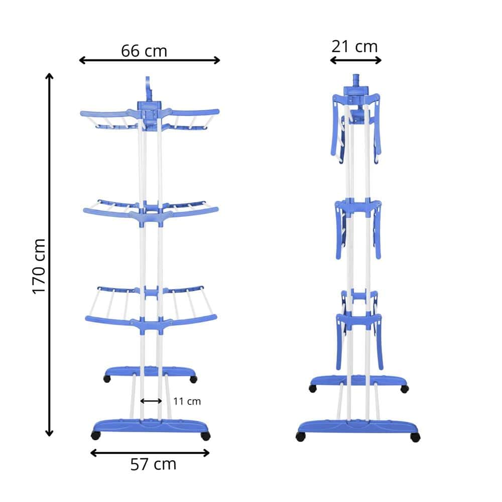 Uscator vertical pentru rufe, mobil si pliabil, cu doua umerase, 75x57x170cm, sarcina 15kg Mob360