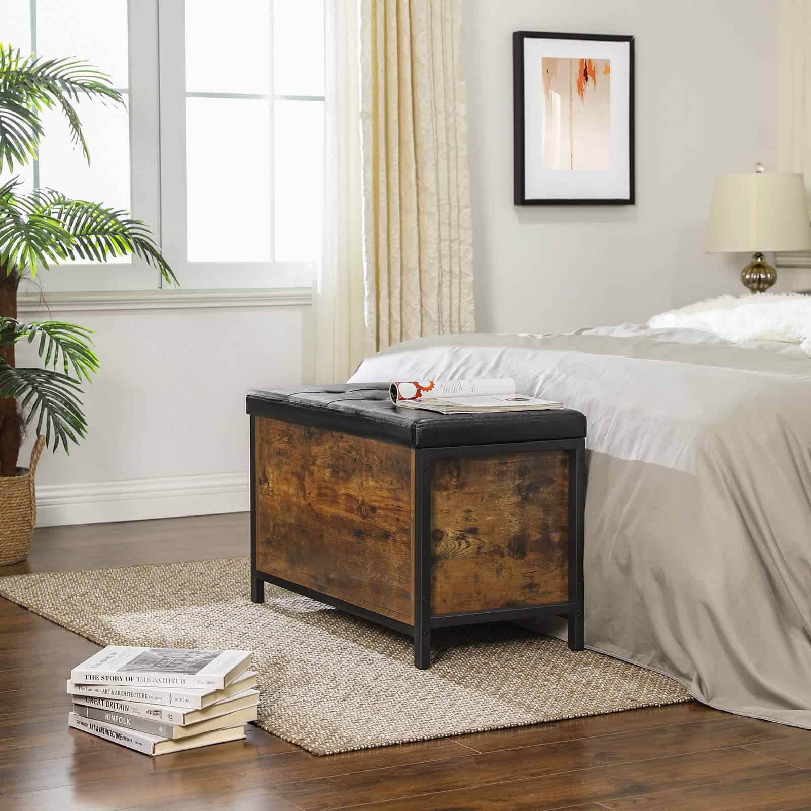 VASAGLE Banca cu lada de depozitare, perna captusita, piele sintetica neagra, 40x80x50cm, maro rustic Mob360 – produs disponibil în magazinul Mob360.