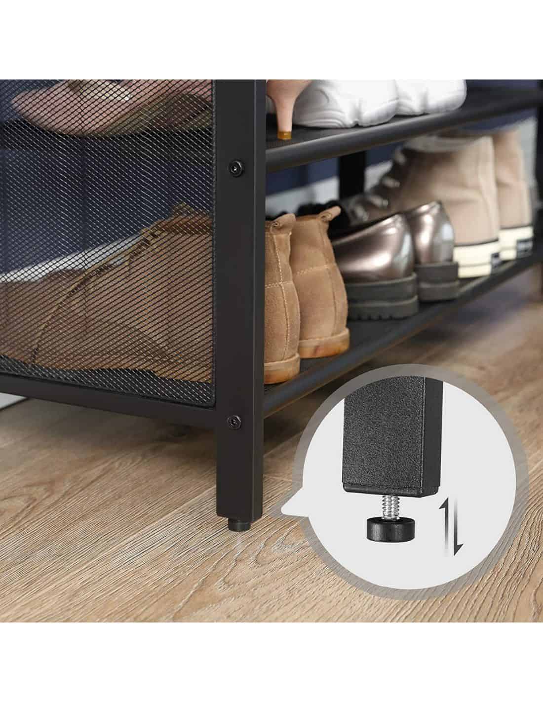 Dimensiunile produsului: 30D x 80W x 48H centimetri Culoare: Vintage maro si negru. Finisaj mobilier: Piele artificiala, metal Despre acest articol Un suport pentru incaltaminte industrial cu scaun este o piesa de mobilier foarte practica si eleganta care poate fi folosita in hol, coridor, birou, receptie sau magazin. Produsul este realizat in principal din metal, care este un material foarte rezistent la umiditate si Orice deformare. Dulapul se va potrivi cu siguranta in decorul multor interioare. Dulapul are doua rafturi pentru pantofi, care, in functie de marimea pantofilor, pot gazdui pana la 8 perechi. Elementele de cadru perfect montate si legarea scaunelor rustice vor da farmec interiorului dumneavoastra, un basm despre estetica holului, coridorului sau magazinului tau prin alegerea unor produse dovedite de cea mai inalta calitate. Rafturile din plasa le fac si mai functionale, deoarece le putem folosi nu doar pentru incaltamintea pentru adulti, ci si pentru incaltamintea pentru copii, chiar si pentru cei mai mici.