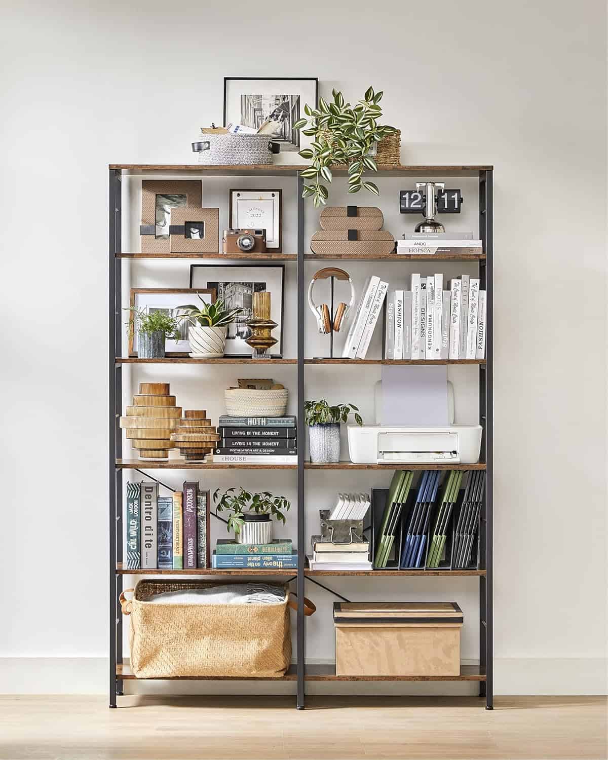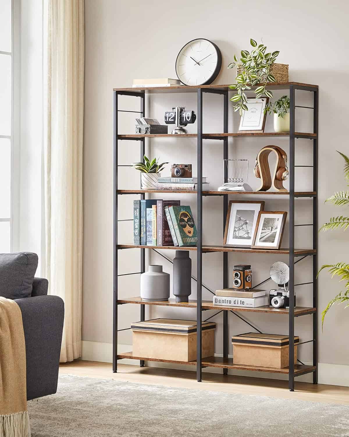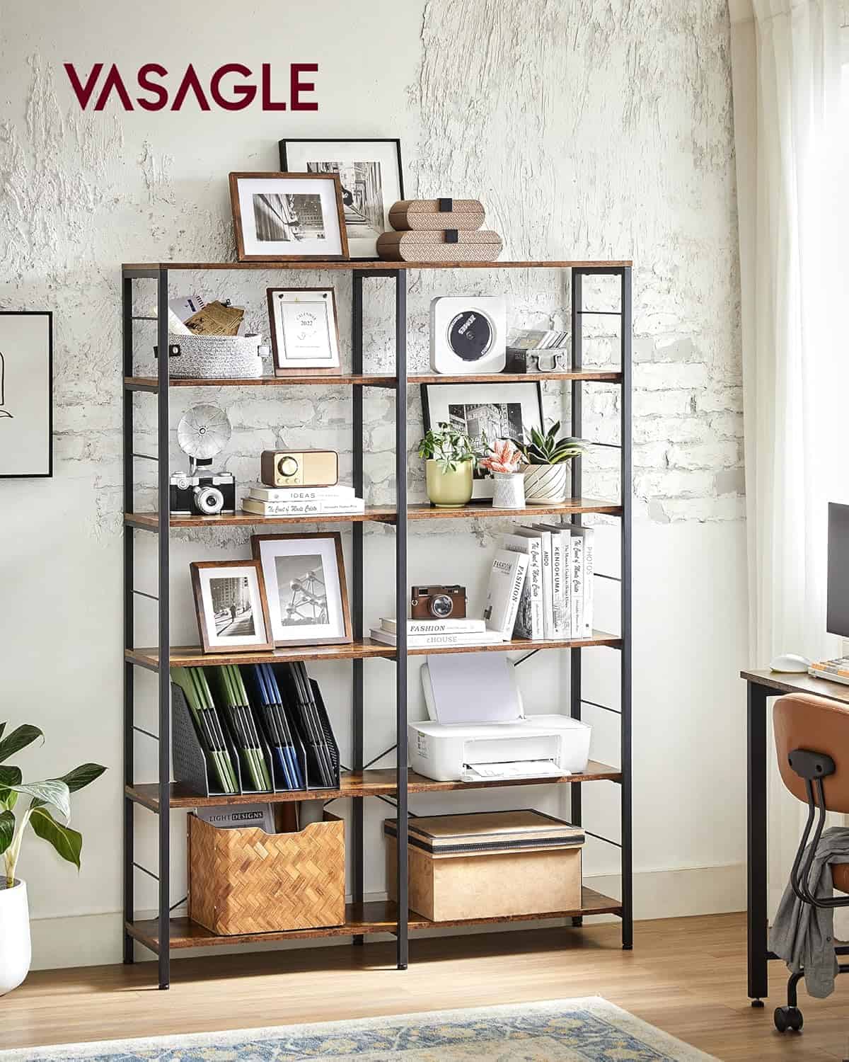 VASAGLE Biblioteca 6 rafturi, cadru metalic, stil industrial, 30x120x170 cm, maro rustic Mob360