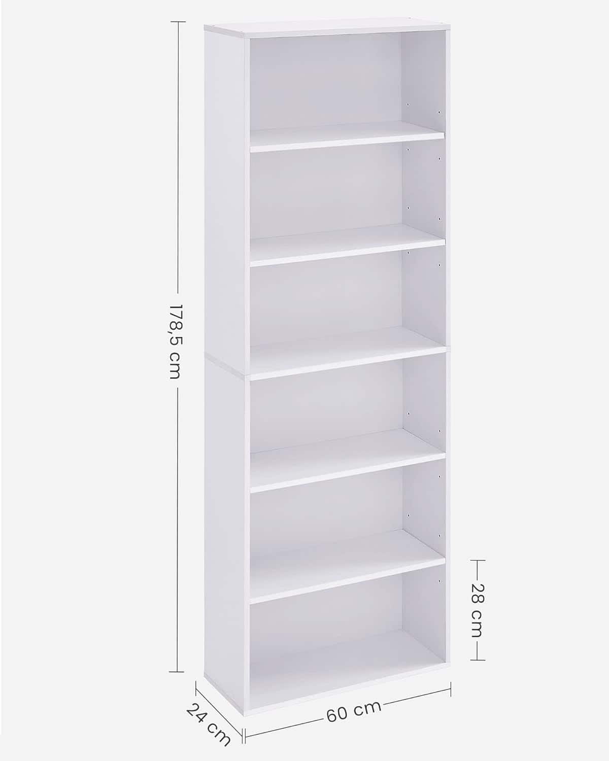 VASAGLE Biblioteca 6 rafturi, in stil scandinav, rafturi ajustabile, PAL, 60x24x179 cm, alb Mob360