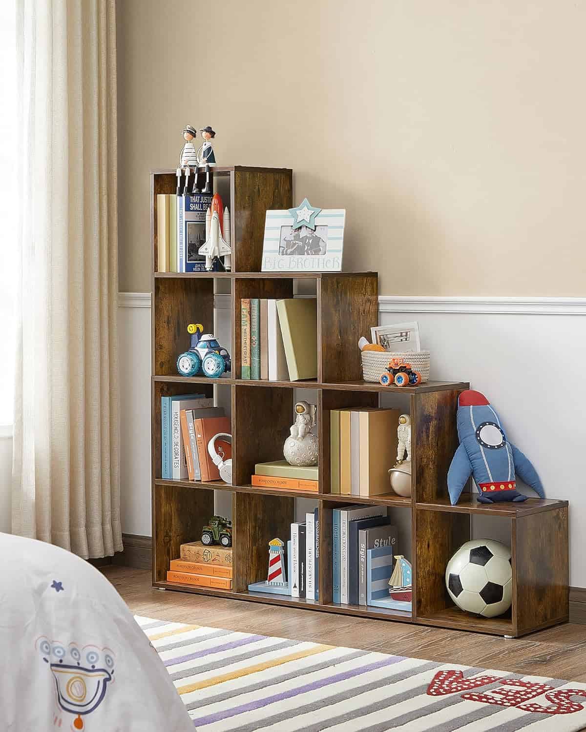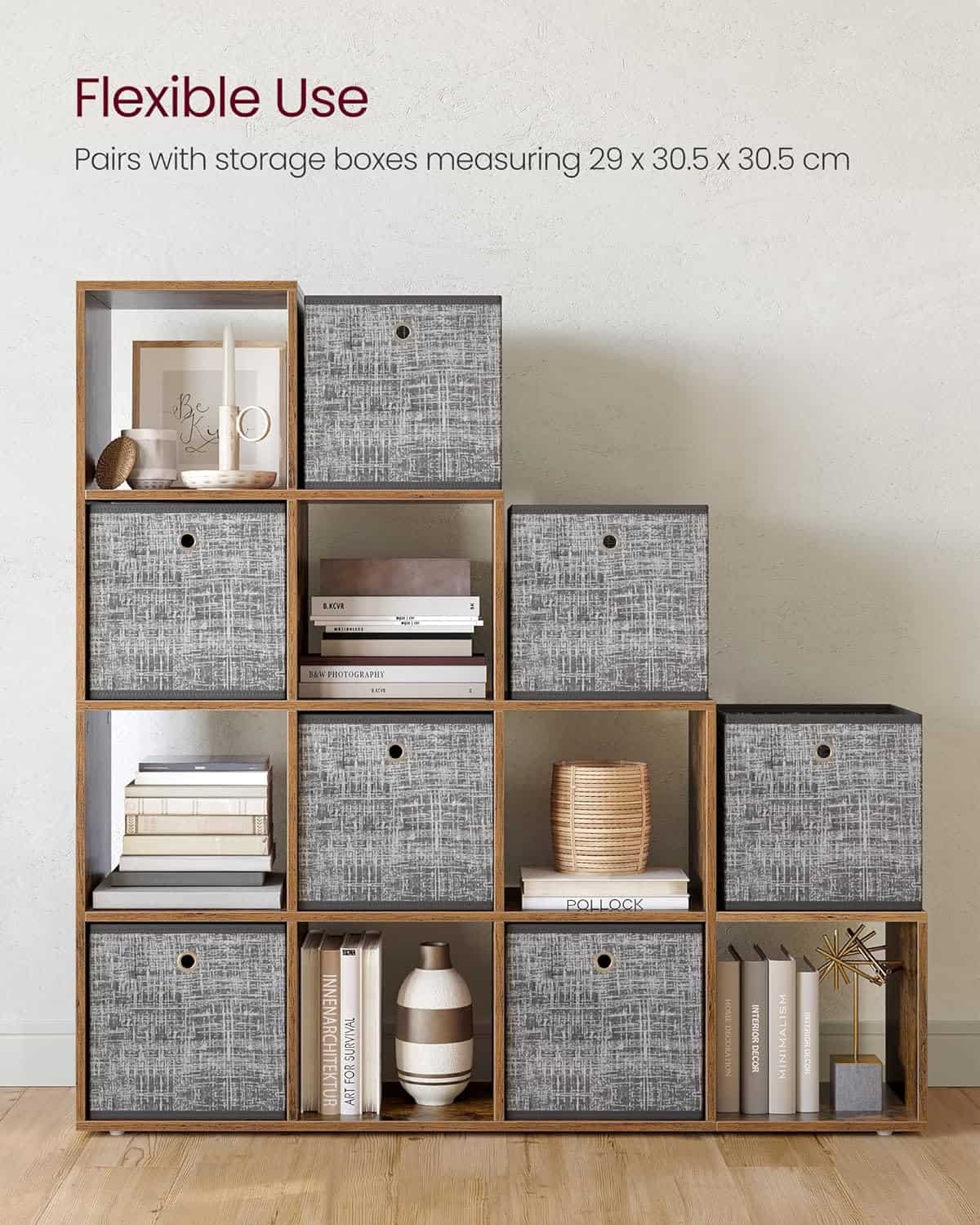 VASAGLE Biblioteca cu 10 compartimente, unitate de depozitare pentru decoratiuni, din lemn, 29x129x129cm, maro rustic Mob360