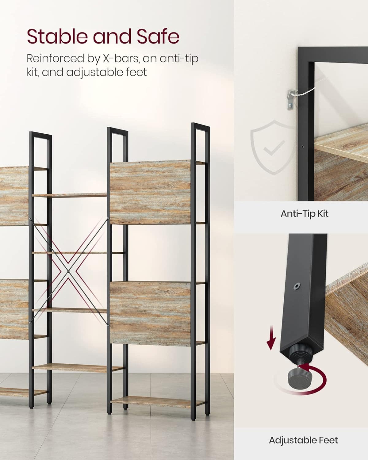VASAGLE Biblioteca cu 14 rafturi din lemn, cadru metalic, 24x158x166cm, stil industrial, stejar si negru Mob360 – produs disponibil în magazinul Mob360.
